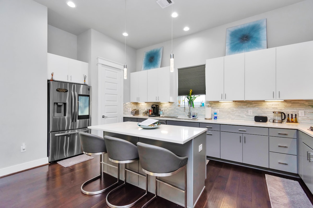 Welcome to our ✵LUXURIOUS✵ home. This magnificent 4-story retreat was professionally designed to bring you a rich, clean, and fresh feel. A great place to relax and hang out with friends and family! Great location for travel physicians and nurses. Quiet neighborhood, close proximity to major highways and essential places. Centered in the heart of Houston, 5 minutes from the medical center, and NRG stadium. 15 minutes from Galleria Mall. Plenty of restaurants around at driving distance!