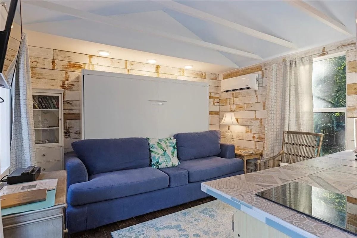 Take it easy at this unique and tranquil getaway. This was truly a bay getaway before digital games and internet. There are two bookcases with hard bound books, card tables, and reading lamps. There is TV with WIFI and internet, a ductless HVAC system and a large 100'x 125' lot This cottage is very suitable for work away from home environment. A separate table and 2 office chairs are available for a work area that can be closed off from the rest of the house during the day.