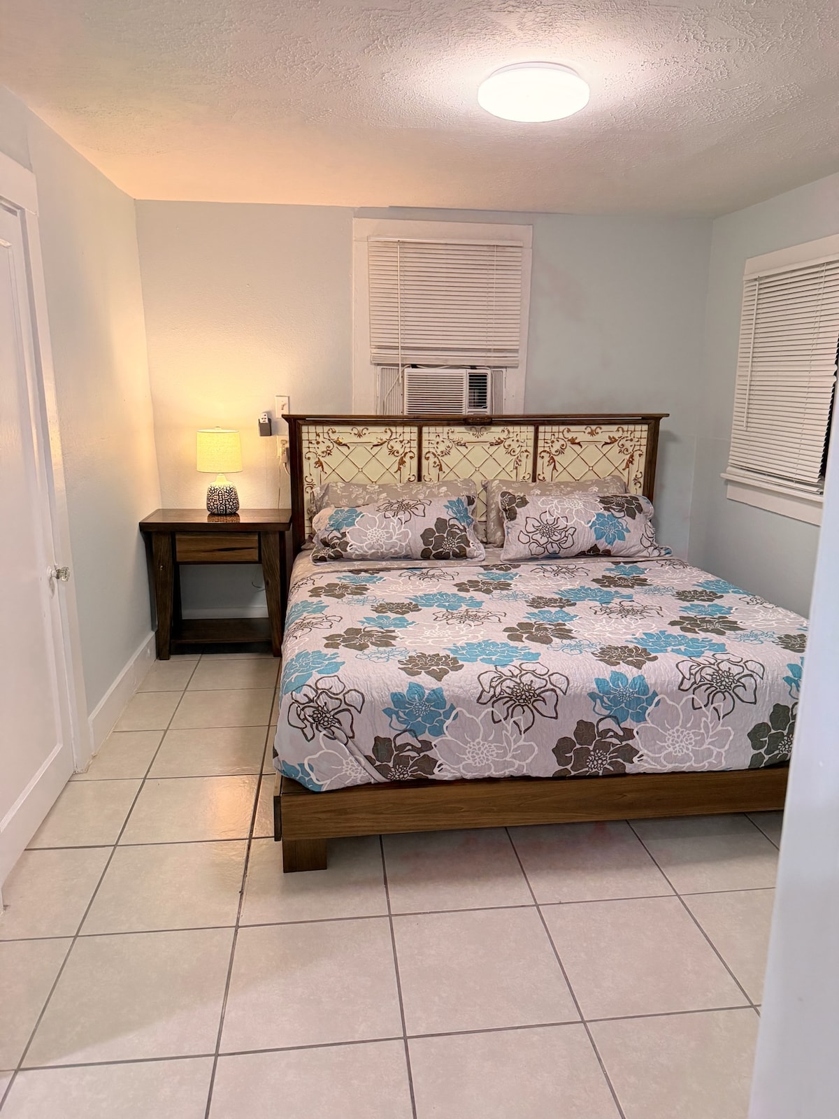 Freestanding guesthouse, located in the pool area of a larger home. Access to the house is over paved walkway with a private yard gate. Front porch overlooking yard and pool. Fully-equipped with King bed, washer & dryer, full-size gas oven, 4-burner stovetop, microwave, in-sink garbage disposal, toaster, coffee maker, pots, pans, utensils. Safe and quiet area. Free street parking. No pets. Non-smoking. Pool use is not included.