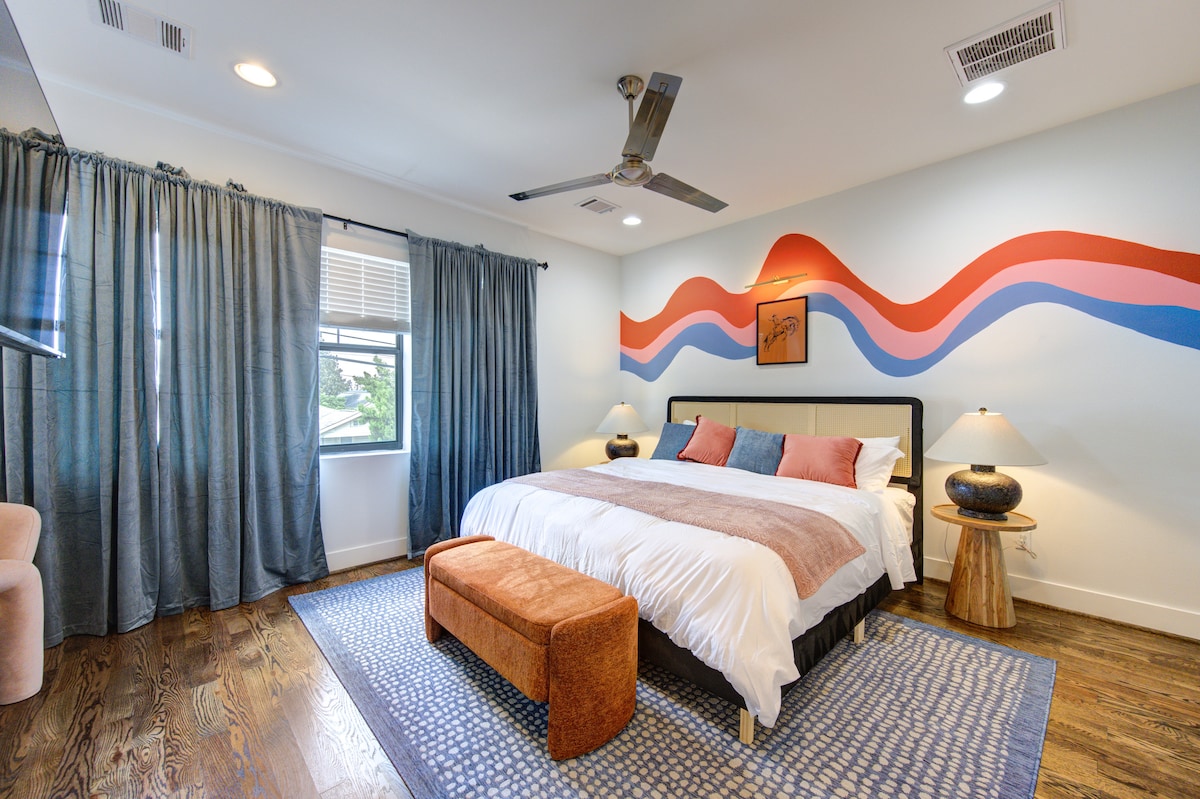 Escape to a spacious sanctuary just blocks from downtown, ideal for up to 8 guests. This family-friendly home boasts 3 bedrooms—each with its own bathroom—plus 1 half bath, ensuring comfort for everyone. Revel in the huge rooftop patio with stunning downtown views, perfect for grilling or movie nights. Enjoy added amenities like ceiling fans in every room and table games for endless fun. Experience a peaceful retreat where relaxation and quality time are guaranteed!