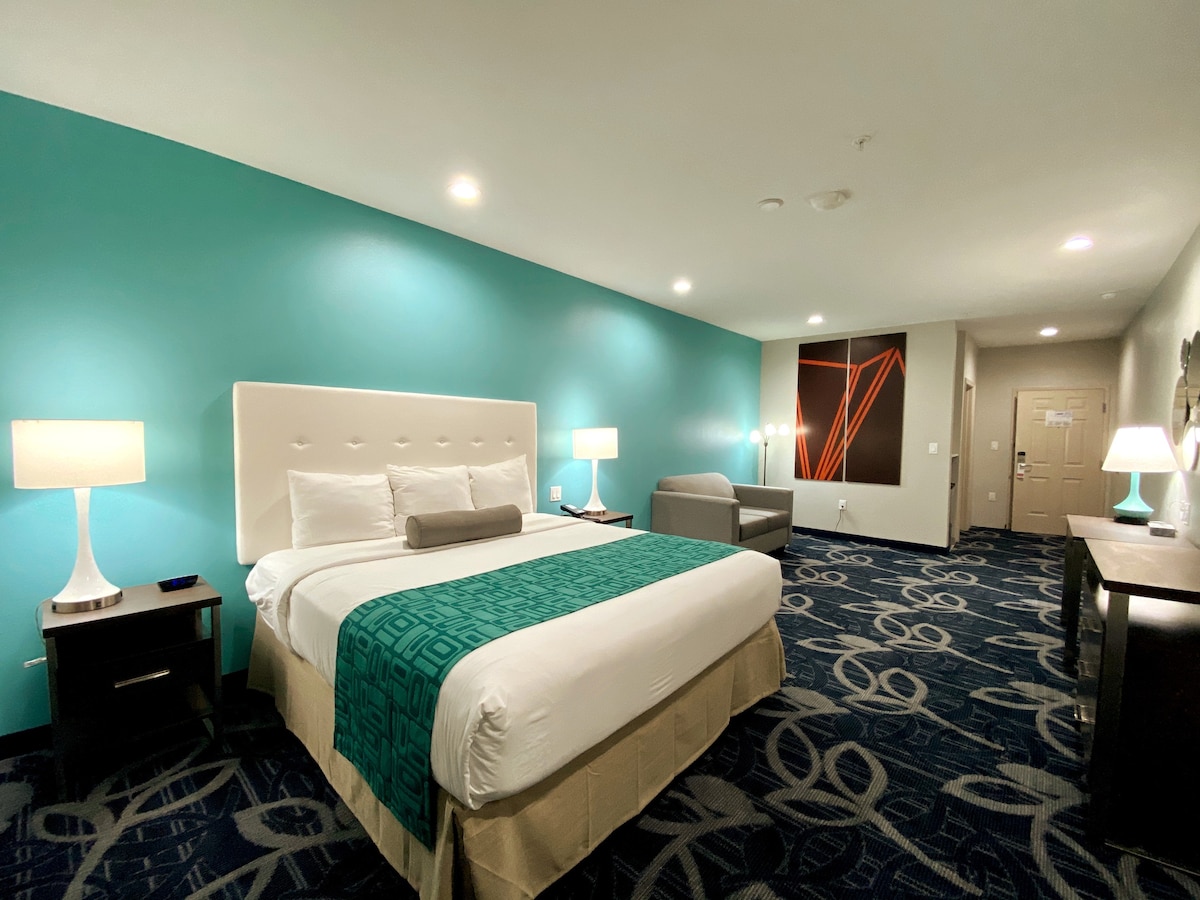 Conveniently located near George Bush Intercontinental Airport, La Quinta Houston Bush IAH South offers quick access to Houston’s downtown, museums, and shopping. This king room features a comfortable bed, desk, and mini-fridge for both work and relaxation. It’s perfect for solo travelers or couples stopping over between flights.