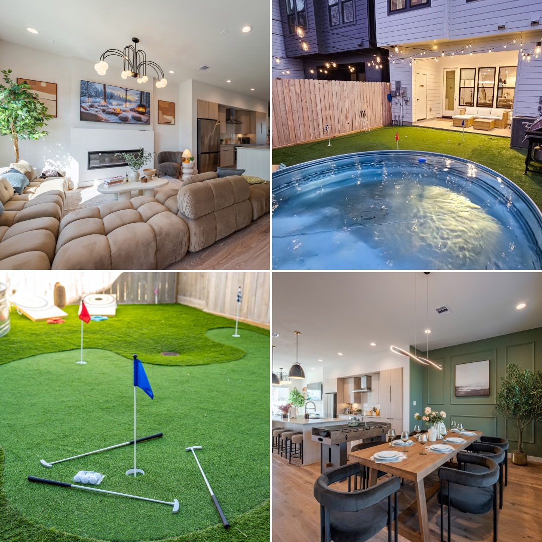 Welcome to The Cozy Cactus, a unique designer home with a private backyard oasis including a hot tub, 85" TV, mini golf, games, grill and more. Designed to be the perfect getaway for couples, solo travelers, and small groups. More highlights about this home: ✓ King + Queen sized beds with luxury linens ✓ Complimentary snacks, coffee & tea ✓ Professionally cleaned and sanitized ✓ Fully loaded kitchen ✓ Located near downtown Houston