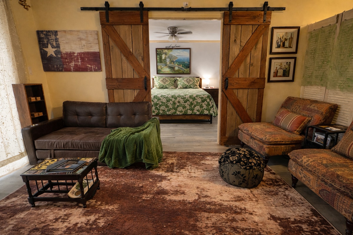 Welcome to your art-inspired penthouse suite in the heart of Houston. This luxury space features chic decor, curated art, stunning skyline views, and a peaceful vibe perfect for relaxing or working. Enjoy smart TVs, a cozy bedroom, spa-style bathroom, and a fully equipped kitchen. Located in a high-end building just minutes from the Med Center, NRG Stadium, and Downtown. Ideal for couples, families, solo travelers, medical professionals or business guests.