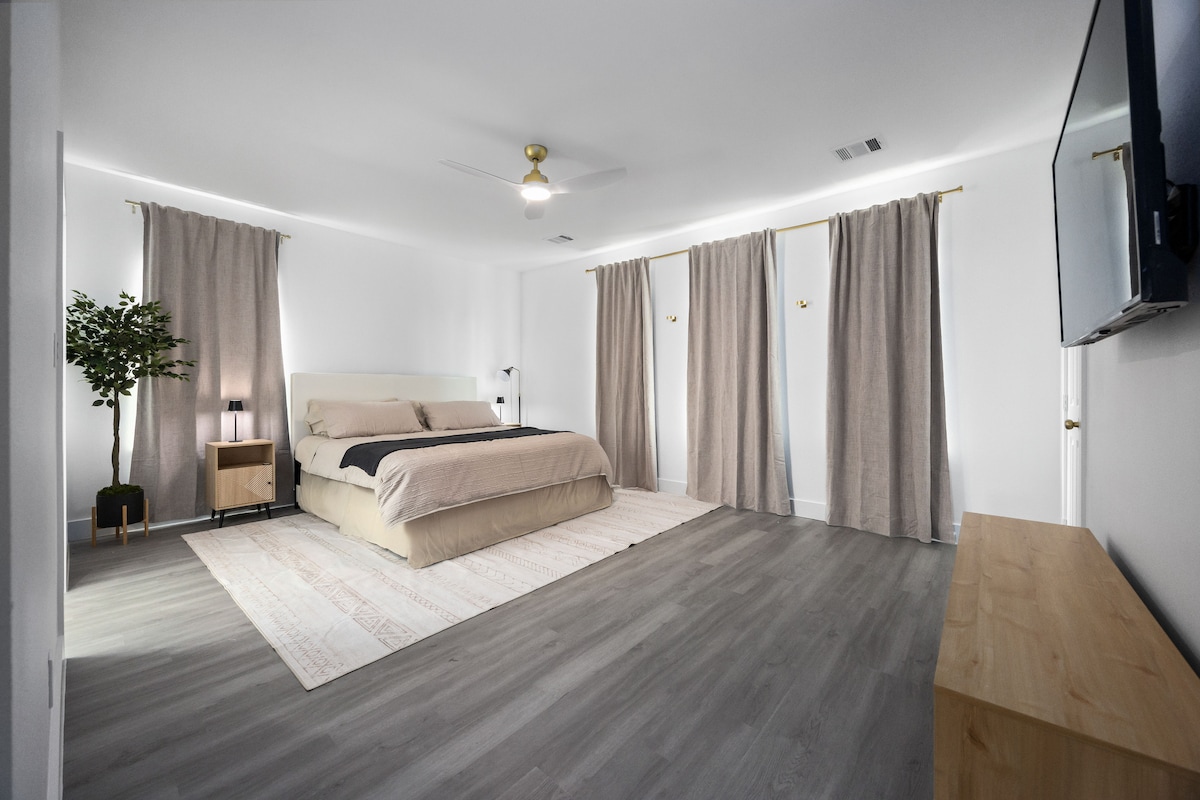 Masterful design and modern elegance are uniquely embodied in this getaway. The home offers an open layout, chic furniture, bright neutral and contrasting colors with an overall modern aesthetic. ✔ Located in the heart of Montrose, mins from downtown/midtown ✔ Walkscore of 91 - You can travel everywhere on foot! ✔ Sleeps 5+ guests on 2 king beds & a sectional sofa ✔ 75" Smart TV with FREE Netflix, Hulu, Disney+, ESPN ✔ High speed 1Gbps Fiber Wi-Fi Internet ✔ Free Reserved Parking in Private Lot