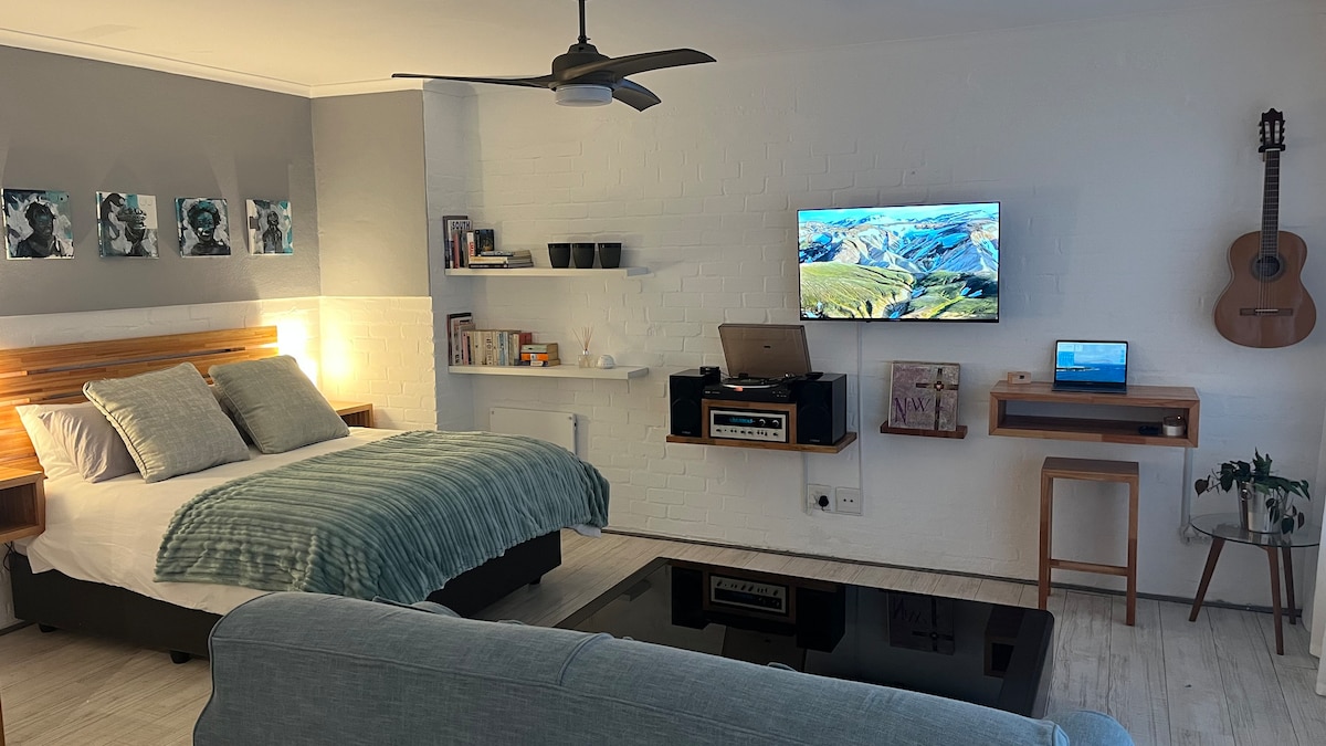 A beautiful , separate entrance flatlet with magnificent views of the ocean over False Bay. Spacious, light and stylish , with quirky touches to make you feel at home. Situated within walking distance of beautiful beaches .We are a 10 minute walk to the Boulders Beach penguin colony and 20 minutes walk from restaurants and historical sites in Simon's Town .The flatlet is attached to our home yet totally private with own entrance via a pathway flanked by plumbago and views of the mountain.