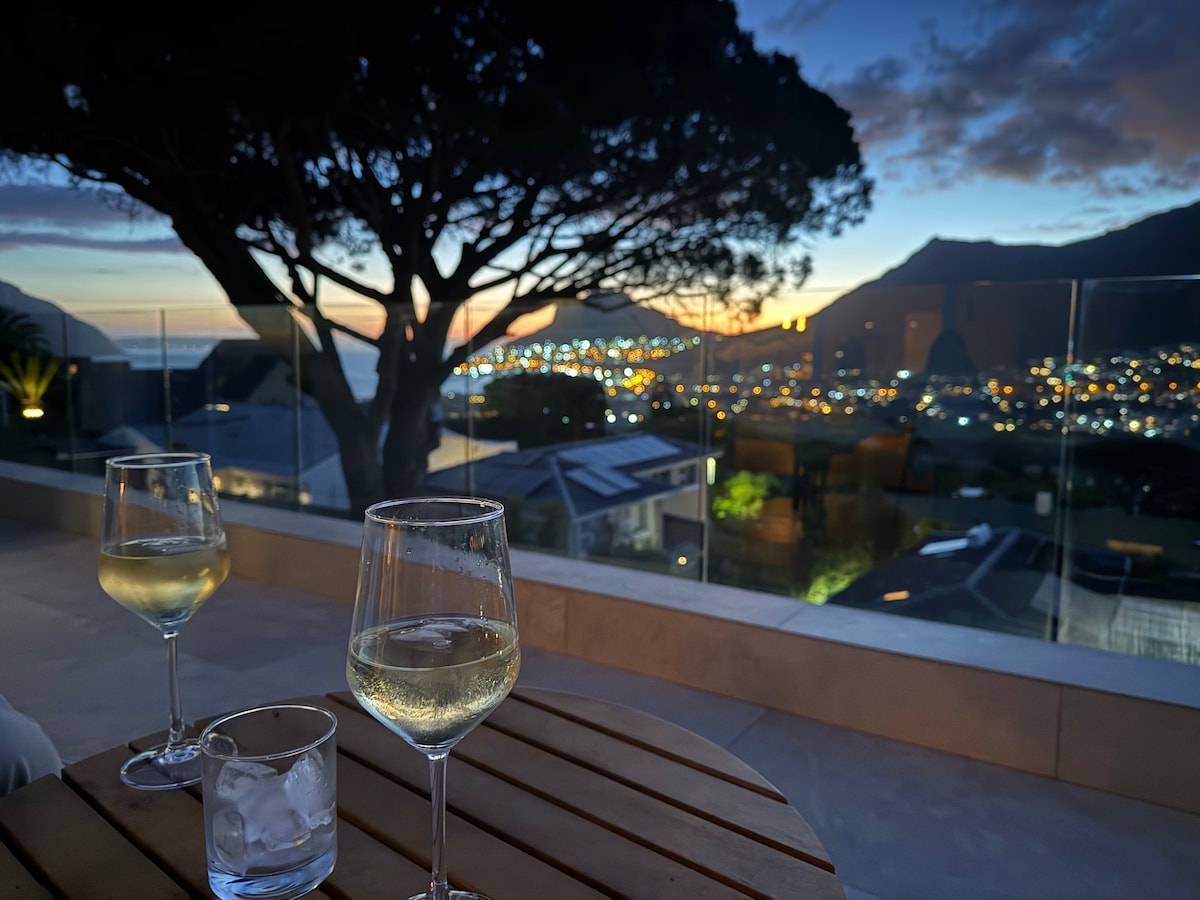 Our studio apartment opens up onto a 40sq meter balcony with a panoramic view of the Hout Bay Valley and the Helderberg mountains beyond. Large sliding doors disappear into the walls creating an unimpeded indoor/outdoor flow while the elevated position protects your privacy. The open plan bathroom faces onto an enclosed secret garden which includes a frame-less glass shower. The unit has a fully equipped kitchenette and is serviced daily except weekends and public holidays.