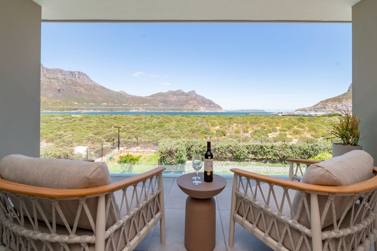 This sunny, bright and airy, open plan, upstairs apartment has an enormous balcony with stunning sea and mountain views. It is situated in a quiet, tranquil, Eco Estate with wonderful, indigenous gardens, and lots of birds. It is in a very safe, 24 hour monitored security estate to give one peace of mind. Close to shops, with a 15 min walk to the beach, 25 minutes drive to Cape Town CBD and the V & A Waterfront. The famous scenic Chapmans Peak Drive is just 5 minutes by car. DSTV. WIFI