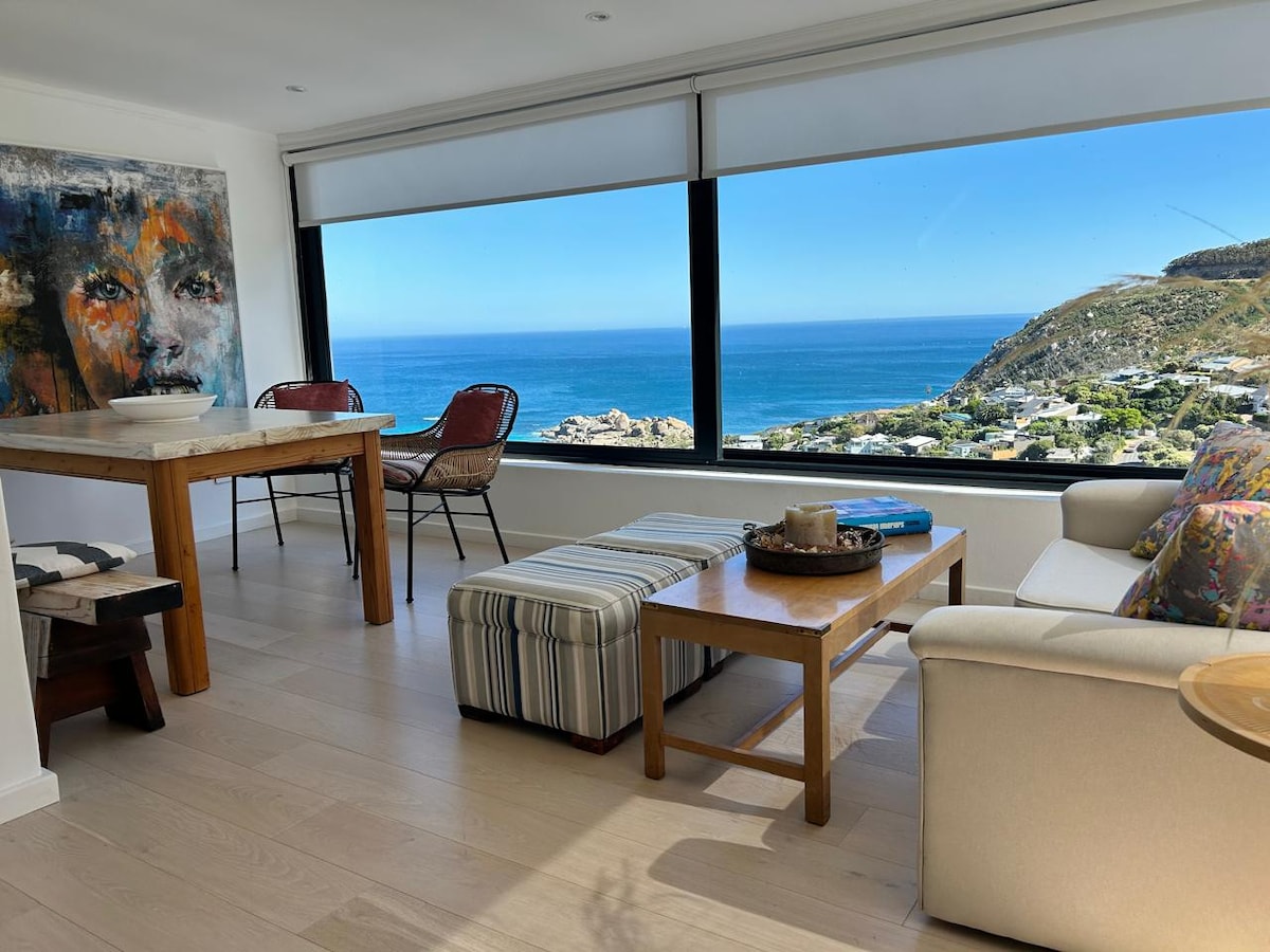 Perched high on the mountain of the Skoorsteenberg overlooking the bay of Hout Bay, this retreat offers one of Hout Bay's most breathtaking panoramas. Floor-to-ceiling windows reveal turquoise water, rugged peaks and lush greenery below. Private ,spacious and beautifully elevated, it's the perfect spot to unwind, breathe and soak in one of Cape Town's most iconic coastlines.