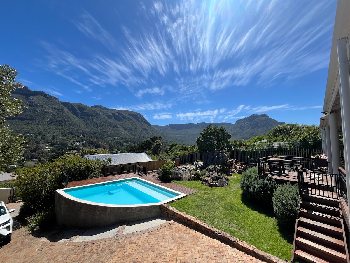 The apartment is set high up on Little Lionshead with panoramic views of the Hout Bay Valley and the Helderberg mountains beyond. Folding doors lead onto an expansive pool deck with sun loungers and a gas barbecue all for the exclusive use of the apartment guests. There is a full kitchenette with oven, hob, microwave, fridge and freezer, an en suite bathroom, lounge area with a large flat panel TV and an open-plan dining area. The apartment is serviced daily except for Sundays and public holidays. We have solar and battery power so are not affected by power outages. Mountain Walks, Village atmosphere with a city 10 minutes away. Beach 2km away. The suite is located on the lower level of the property and is totally private. There is parking on the property. Pool, garden, Mountain We are available to transport you around the Cape, take you on wine tours at an additional fee. MacD, our housekeeper is on hand 24 hours to assist where necessary The house is safe and secure with guarded entrance. Wake up to birdsong and enjoy the surrounding majestic mountains. Mount Rhodes is a security estate nestled in the foot of Little Lions Head. Mycity bus stop at the bottom of the road, Uber We provide a laundry service at an additional cost and breakfast is available if ordered at least 24 hours before at an additional cost as well. I am also more than happy to make any reservations for tours or restaurants on your behalf.