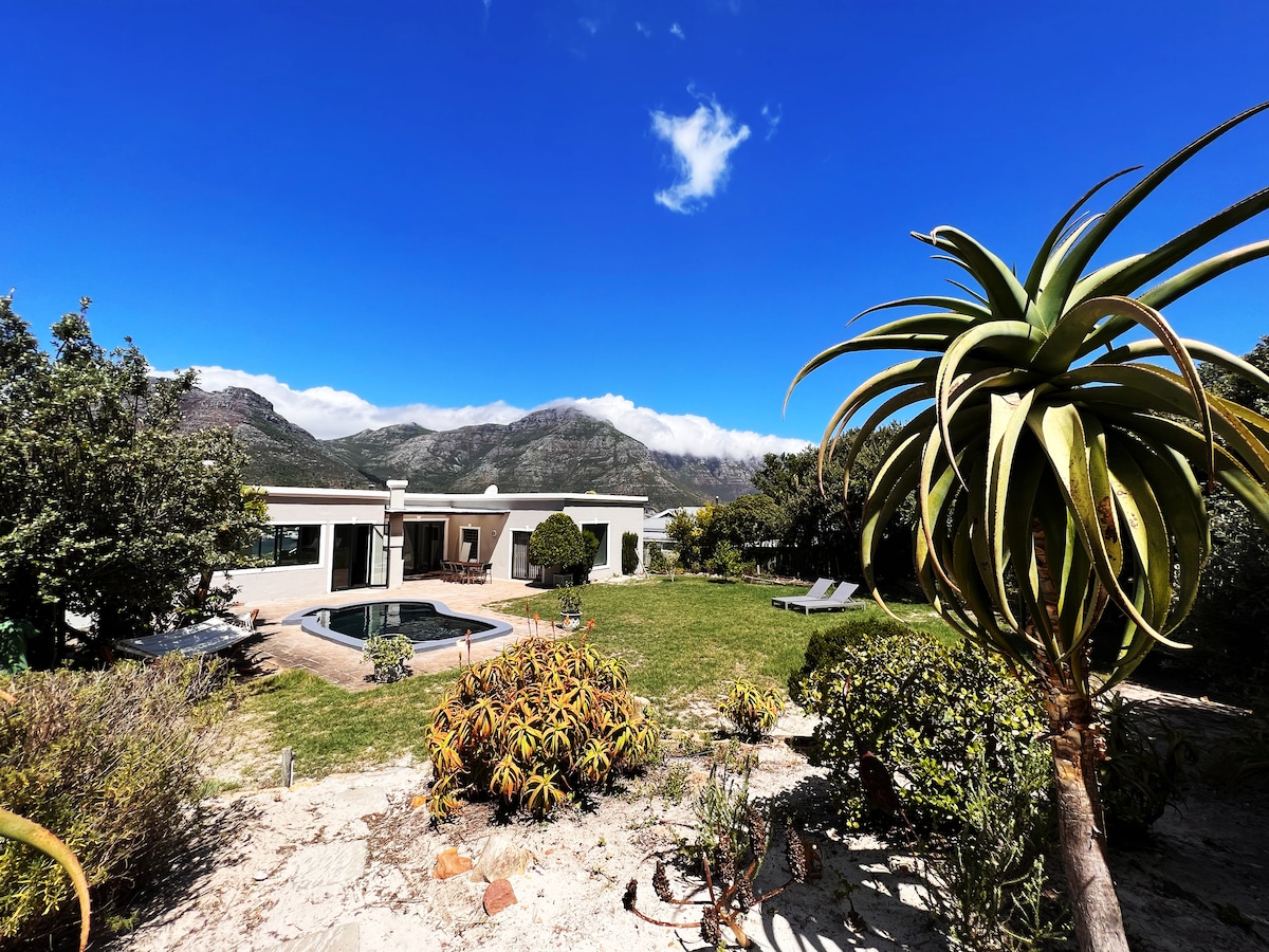 This is a very special holiday house indeed. It is blissfully quiet and private yet easily accessible. Great in winter too. One road back from the sea which is actually an advantage at Boulders Beach as it is hidden away from the many tourists.