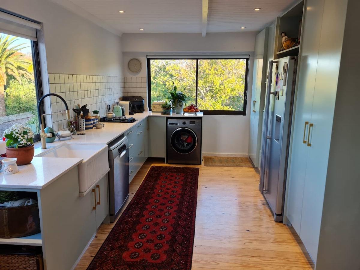 A former art studio has been converted into a beautiful little home that is attached to main house with panoramic valley view from your bed and garden. Further up in the mountain of Kronenzicht in a quiet cul-de-saq you can unsettle while having a dip in your private and heated hot tub, relax under the rain shower with stunning views on the back of table mountain and little lionshead or start your sunset walk on the beautiful sand dunes next to our property, even all the way down to Sandy Bay.