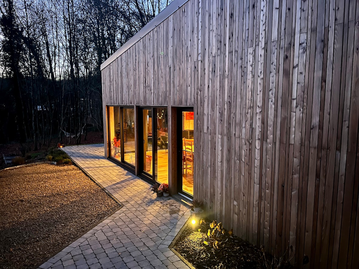Notre maison est une salle de spectacle réaménagée en logement. Elle est bâtie avec des matériaux écologiques et de grandes fenêtres laissant entrer le soleil toute la journée. Elle se trouve en pleine campagne avec une vue imprenable sur les Ardennes belges. Luxe, calme et volupté y règnent en maître. Plein d'activités nature; escalade, descente en kayak, promenades en foret, baignade en rivière, visite de châteaux, de parcs. Ou ne rien faire et profiter de la vue dans le jardin...