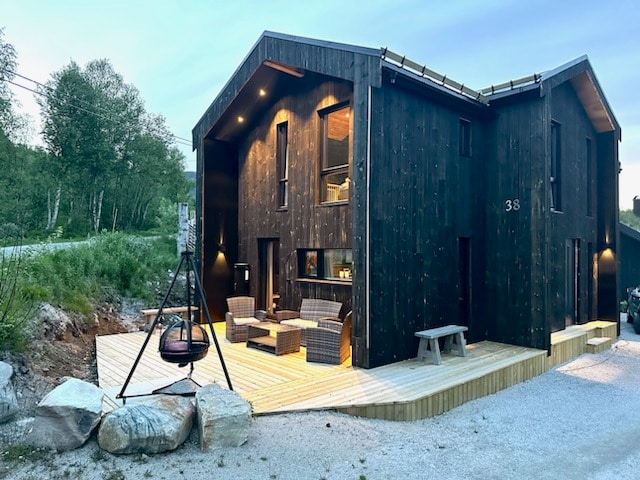 Moderne, men koselig hytte med store vinduer som gir flott utsikt til alpinbakken og tar naturen med inn i stua. Fra hyttefeltet kan du gå rett inn på stien som fører Hovdenuten eller NOS. Hytta passer godt for de aller fleste, også for flere familier med barn. Gode sol forhold på hyttetomt hvor man kan nyte kveldssol fra terrassen. Merk! Leietaker må selv ta med sengetøy, kjøkkehåndkle og håndkle. NB! Tillater ikke fest eller røyking inne.