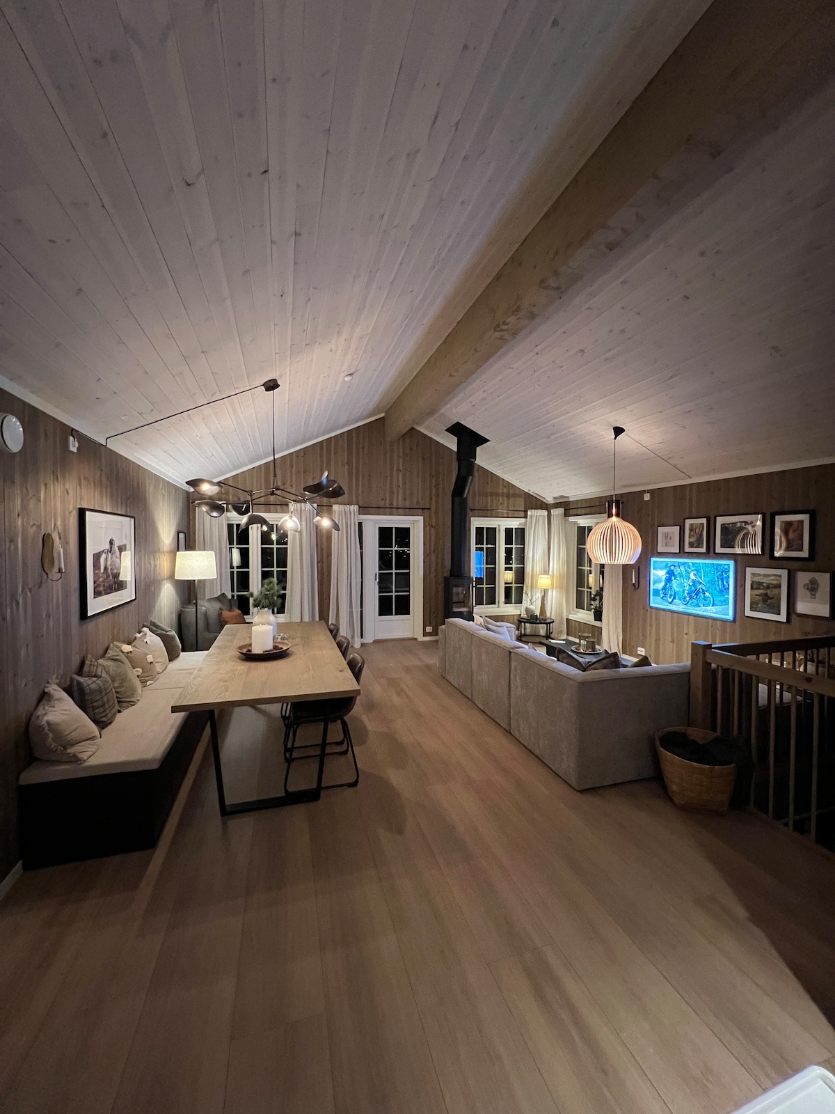 Gåavstand til alpinbakken (500m) og sentrum! Ny hytte desember 2024 ! Nydelig utsikt! Alt av nødvendig utstyr. 1.etg: 3 soverom og 1 kjellerstue med sovesofa og tv, samt bad, gang og bod. Pluss utendørs bod. Utgang til uteplass 2.etg :1 soverom, bad (med vaskemaskin og tørketrommel) stue med TV og kjøkken . Utgang til hyggelig veranda. Varmepumpe og peis Solrik terrasse og veranda. Elbil-lader og wifi . Det er 9 senger i hytten, i tillegg til mulighet for å sove på sovesofa (plass til to)