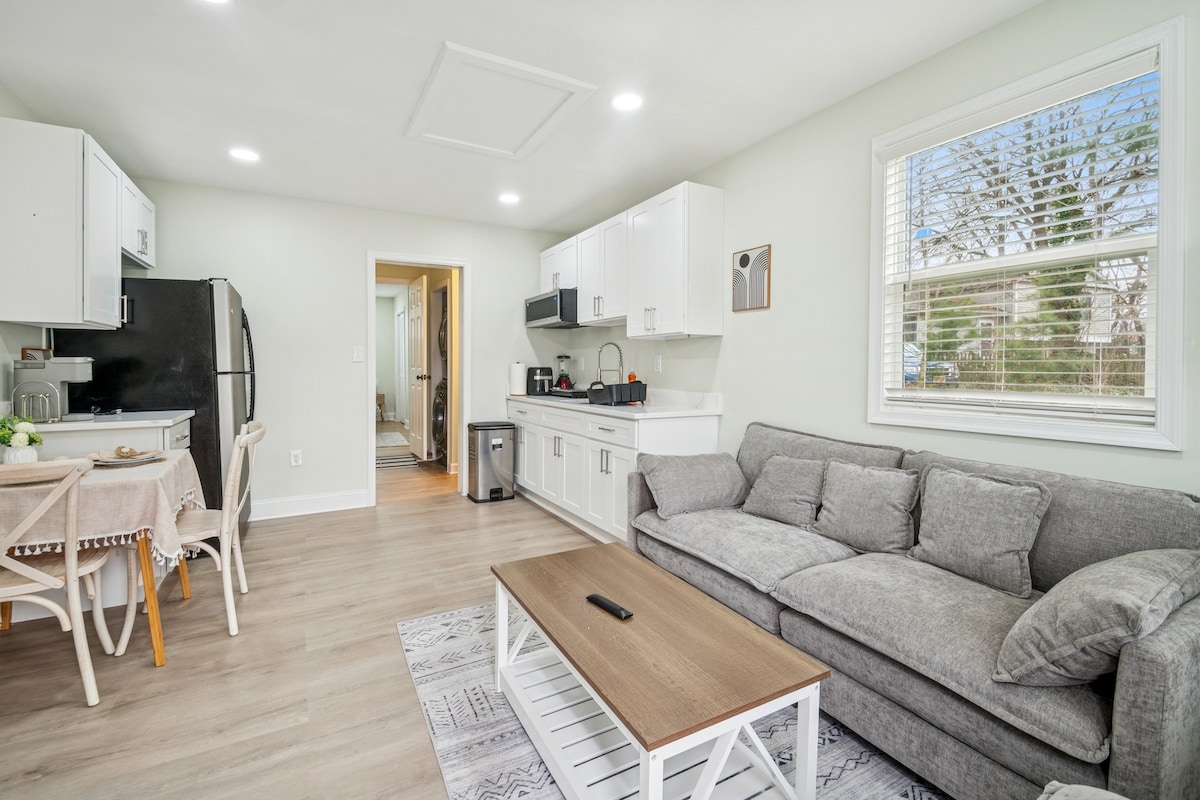 Welcome to the stylish 1BR 1 bath home unit nestled in the charming neighborhood of Glen, just a few steps from the Empowerment Temple Church & Synagogues. Escape the crowds and enjoy the private backyard while being close to Downtown, Inner Harbor, restaurants, shops, sports & attractions. ✔ Comfortable Bedroom (Double + XL Twin Bed) ✔ Living Room ✔ Kitchenette ✔ Backyard (Lounge, Fire Pit, Dining, BBQ) ✔ Smart TV’s ✔ Workspace ✔ High-Speed Wi-Fi ✔ Free Parking
