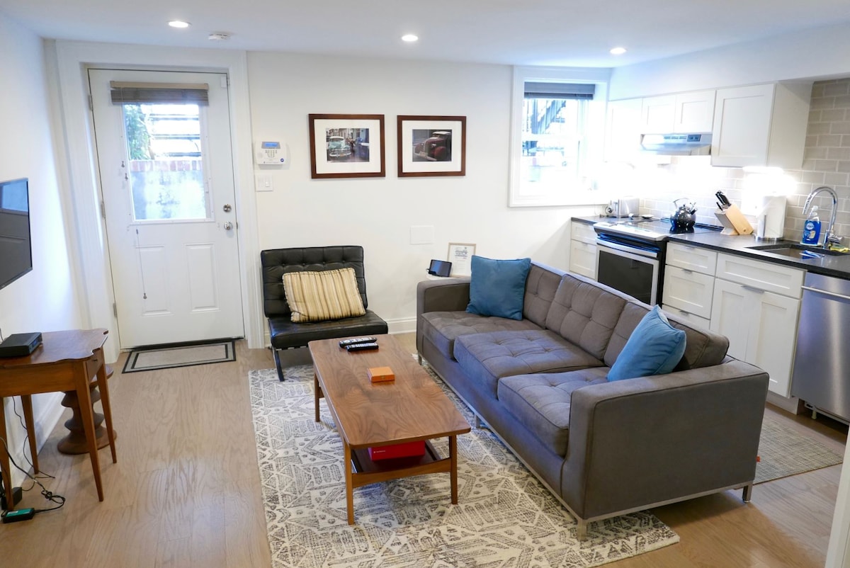 Our cozy basement apartment, custom-designed in 2023, is just half a mile walk to Georgia Avenue/Petworth Metro stop, offering a quick 12-minute subway ride to the National Mall. Enjoy city living and historic residential tranquility with access to outdoor space. Situated on a tree-lined street opposite Lincoln’s Cottage, guests can easily walk to local restaurants and bars in the peaceful Petworth neighborhood, providing convenient access to all that D.C. has to offer.
