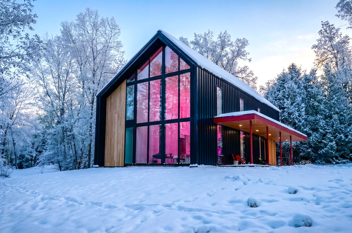 At The Fernweh House, you'll discover a serene riverside retreat with modern Scandinavian design. As you enter, the open great room concept combines your living, dining, and kitchen areas under a soaring 26-foot ceiling, emphasized by massive floor-to-ceiling windows. These windows flood the space with natural light, blurring the line between indoors and lush outdoors. Sleek, minimalist decor complements the surroundings, creating an ideal environment for you to unwind and connect with nature.
