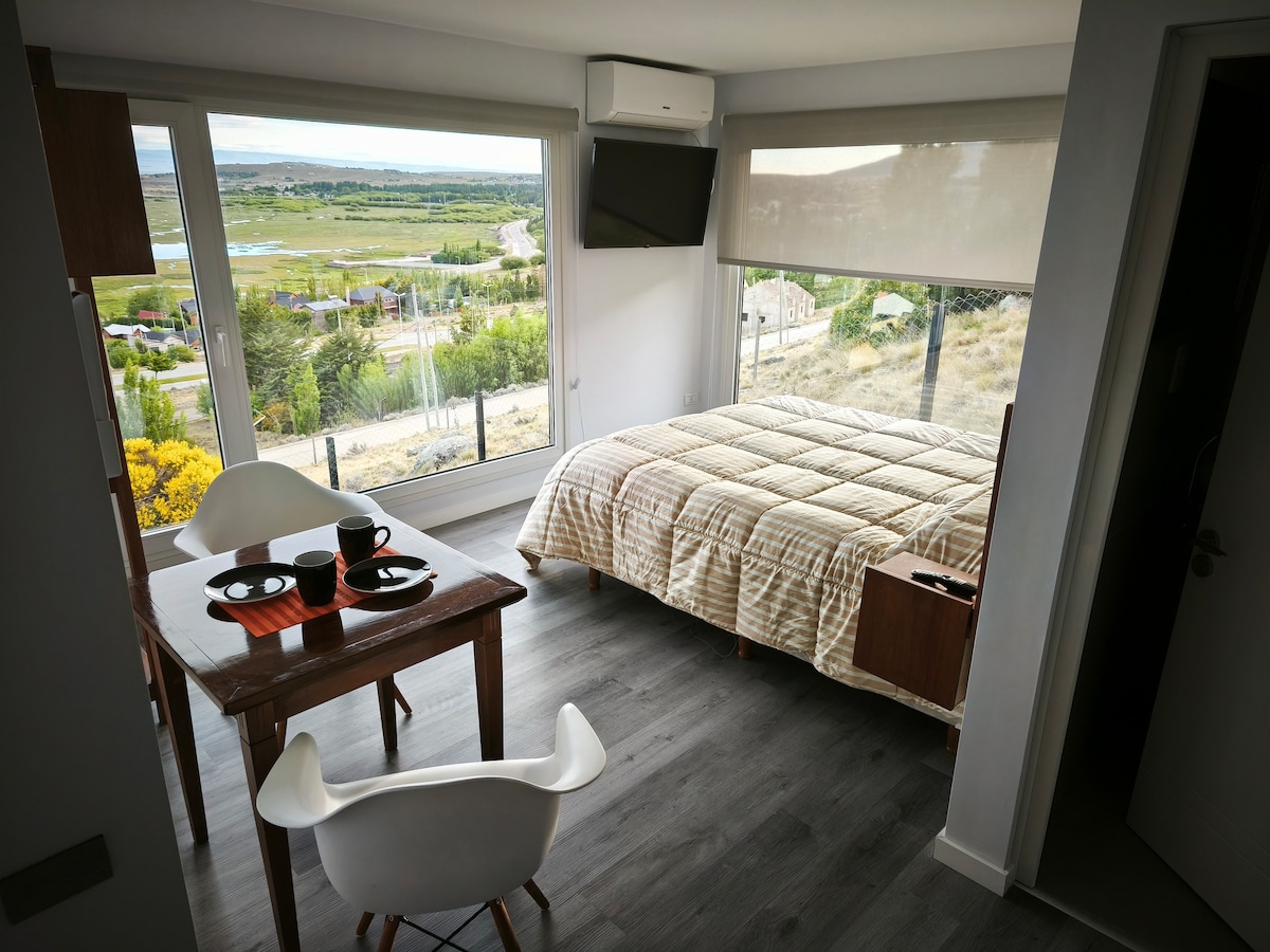 Te invitamos a disfrutar de nuestros departamentos de diseño en la ciudad de El Calafate en tu visita al Glaciar Perito Moreno! En lugar único y tranquilo. Cada departamento cuenta con una habitación , un living comedor e ingreso independiente. Viví una experiencia inigualable en nuestros departamentos de diseño, donde cada detalle está pensado para sorprenderte y brindarte el máximo confort!