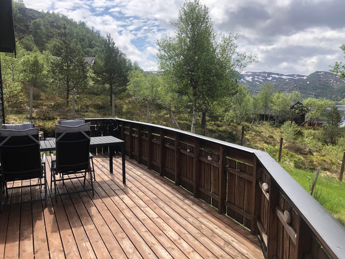 Slapp av sammen med hele familien på dette fredelige bostedet. Hus med fantastisk utsikt over Sognefjorden. Flott terrasse ved fjorden. Komfortable hagemøbler . Gratis lading El-bil. 5KW. Raskt Wifi. Alt du trenger for kort og langtidsopphold. Rengjøring inkludert Sengetøy og Håndklær inkludert Lovlig med hund.