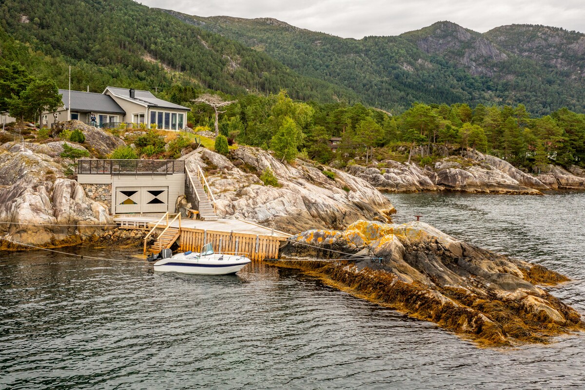 No roads, no phone signal, just you and pristine Norwegian nature. The villa is located in one of the most spectacular fjords in Norway – Finnafjorden. The fjord is a fjord arm off Sognefjorden, the «King of the Fjords», and is a small, but very private fjord. The seemingly untouched fjord, surrounded by steep mountains and gushing waterfalls hides a very small settlement – Finnabotnen. The perfect setting to experience Norway at her finest.