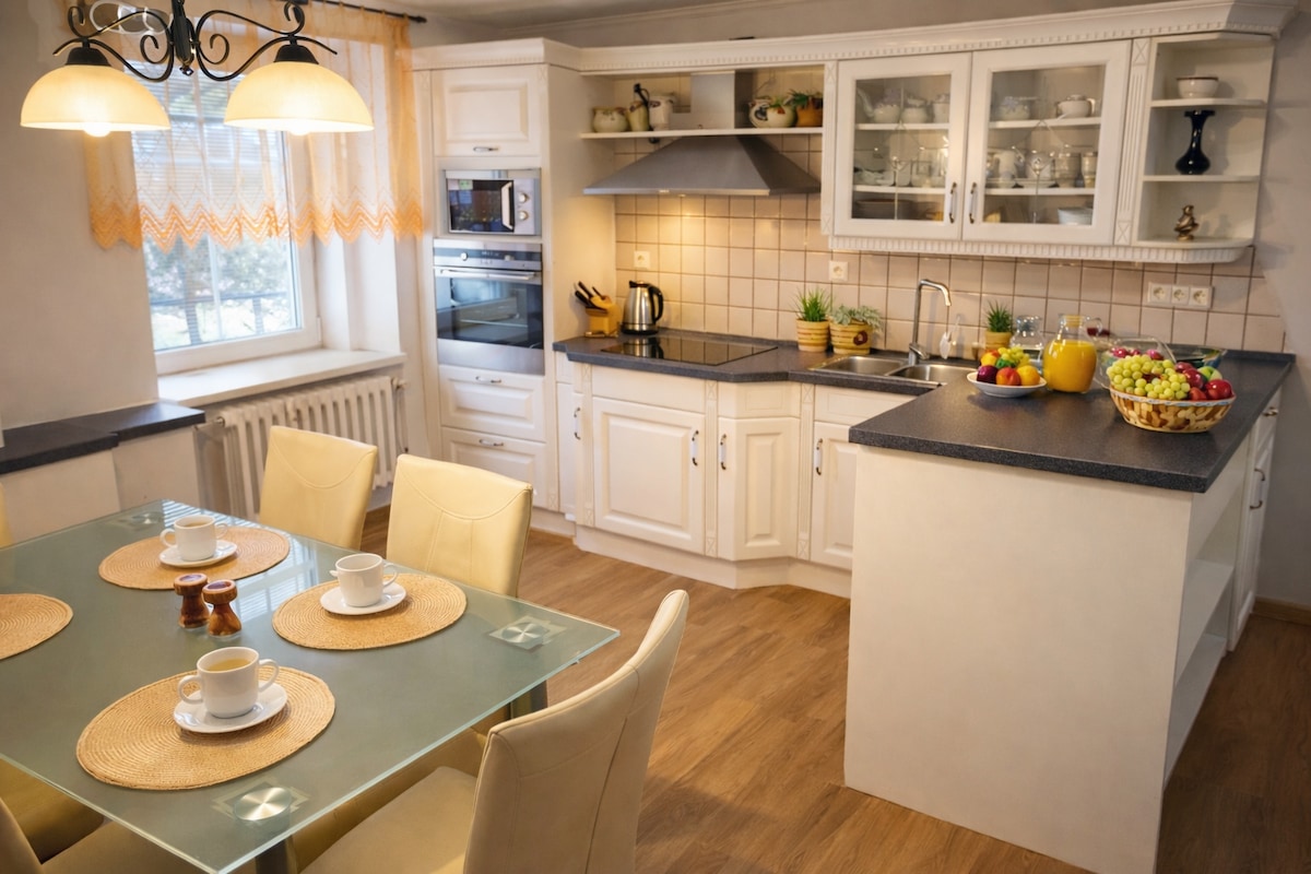 Modern mountain comfort for the whole family. Cozy and stylish apartment with two king-size beds, Smart TV, fast Wi-Fi, heating, and a fully equipped kitchen. Enjoy peaceful views of the Labe dam and surrounding hills from your private balcony. Garage parking keeps your car safe from snow. Easy self check-in. With a ski lift just minutes away, it’s ideal for both winter fun and year-round relaxation.