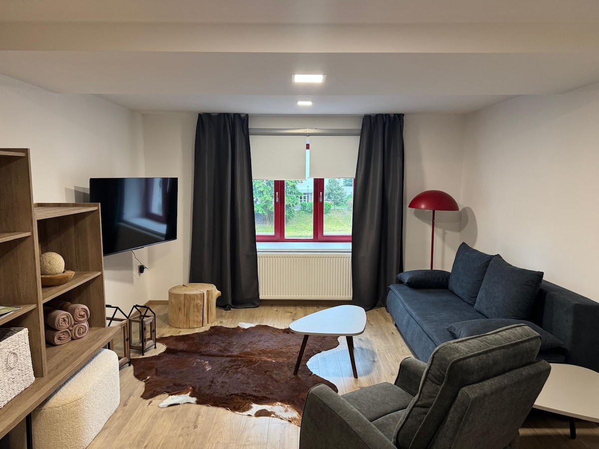 ⁃ Ultimate Peaceful and cozy designer studio to sleep 2- can hear the nearby stream ⁃ Architect Designed furniture and art ⁃ Fully equipped kitchen for 2/3 people (coffee machine, dishwasher, washing machine/dryer, oven, grill, cooking plates, toaster, kettle, fridge/freezer) ⁃ Luxe Egyptian cotton bedding ⁃ Luxury Icelandic sheepskins & designer cushions ⁃ Clever, functional design to maximise storage space The address is Novy Svet 699, Harrachov Checkin in person possible or keys in lockbox