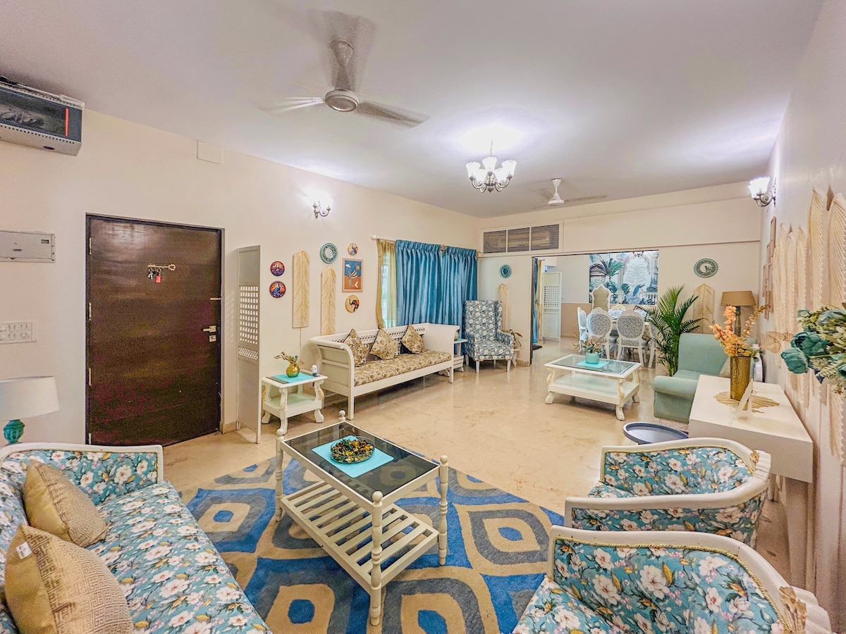 Experience serenity in this spacious 3BHK villa at Shubh Enclave, designed for families, founders, and creatives. Nestled beside lush greenery and a peaceful lake, ample sunlight and fresh air create a sanctuary for spaciousness, stillness and silence ✔ 3 king-size bedrooms w private attached washrooms ✔ Spacious living room with 55" Smart TV ✔ 2 airy balconies ✔ Fully equipped kitchen: microwave, stove, fridge, mixer utensils, Washing machine ✔ Daily cleaning available, cook on request