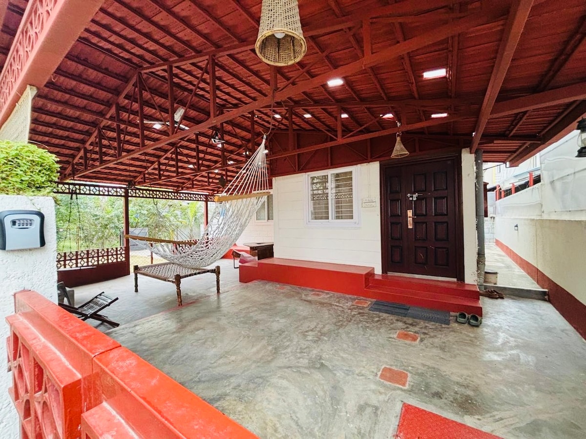 Parvati, a cozy one-bedroom home that offers a full-unit experience with all the amenities you need for a comfortable stay. Whether you’re visiting for work or leisure, it provides a peaceful escape in the heart of Bangalore, blending modern comfort with nature’s charm. Surrounded by a lush garden with a private portico, the home is designed with an antique theme, featuring a natural well, delightful poster bed and vintage decor that creates a warm, inviting atmosphere.