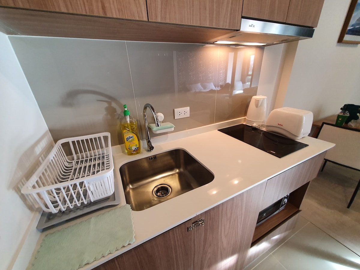 - Just a simple space but comfy one and it has everything you need. - The studio room and the size is 27 sq.m. with balcony. - Smoking is not allowed in the premises. Bathroom : - The place does not provide any shampoo, soap (as those are for personal type). Kitchen/Pantry: The place does not provide such as ; - Salt - Pepper - Cooking oil and etc.. however, the place does provide, microwave, fridge, cleaning dishes, spoon/forks. The place does not provide washing machine. Thanks
