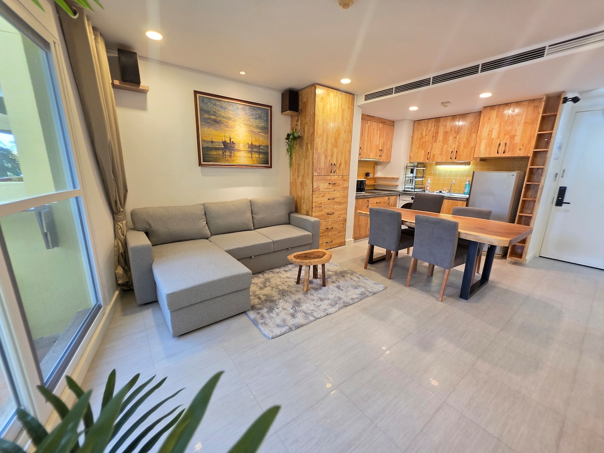 Dream that you are relaxing on a beach and see sunset the day in your eyes ✔Quiet beachfront condo with private pool and beach. ✔Transform living room into another private bedroom for 2 couple, friends or family. ✔Brand New room just finished renovate everything in 2022. ✔Just like 5-Star In-Room Hotel Amenities. ✔Next to supermarket and 7-11. ✔*** I guarantee an absolutely private stay. No sharing, no disturbances. ✔*** Superhost friendly 24hr support by น้องมังคุด
