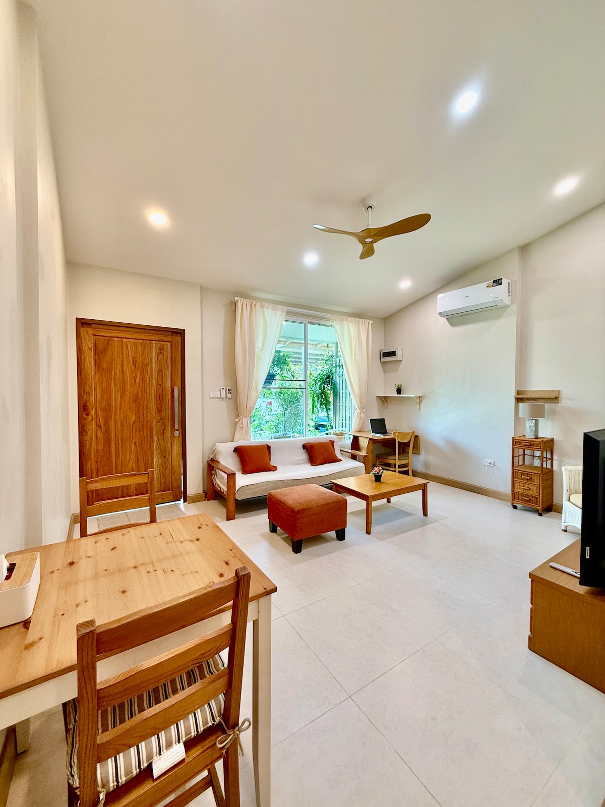 🌴 Cozy 1-bedroom home just 5 minutes walk to the beach (350 m) 🏖️ Perfect for couples or solo travelers looking for a relaxing stay ☕ Surrounded by cafes, local restaurants & convenience stores 🛍️ Close to Cicada & Tamarind Markets, easy access to everything