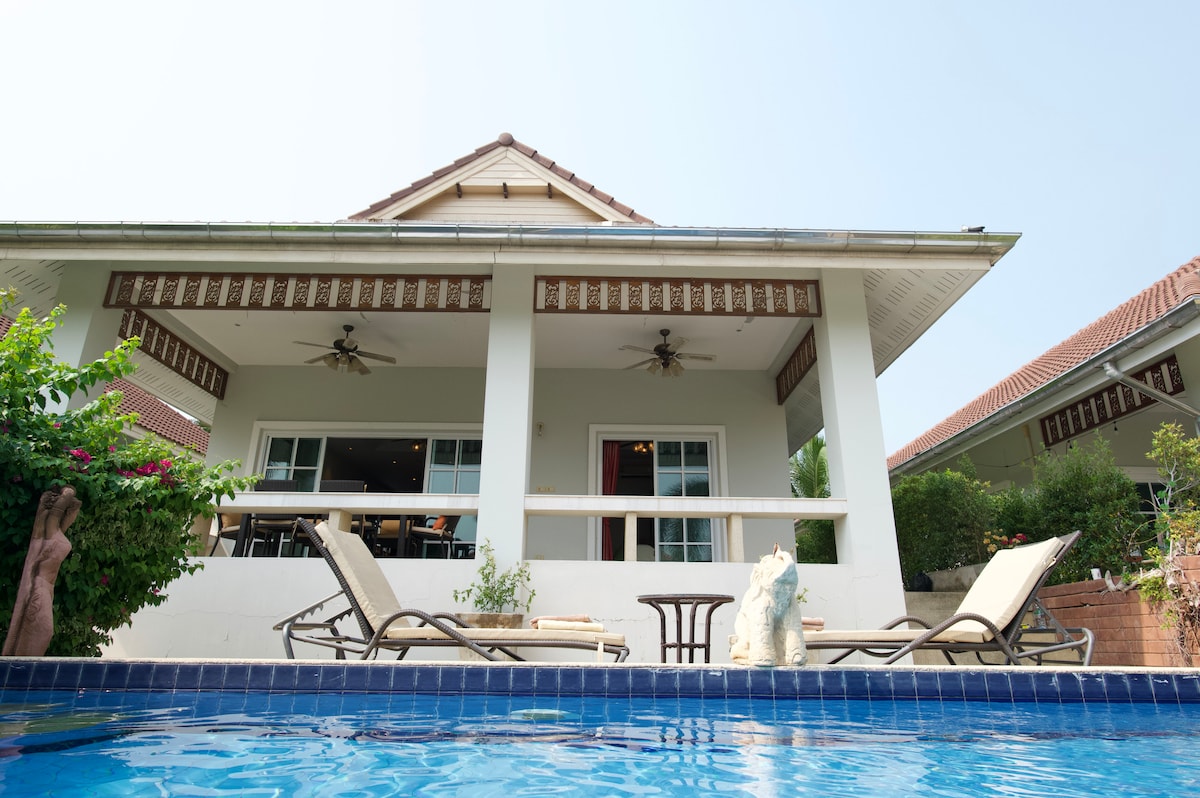 Luxury 3 bedroom, nice breeze, Private Pool Villa, only 10 minutes walking distance to the ocean. This is your perfect home away from home for family time, friends fun time, couple romantic getaway, even your alone time getaway from cold, busy or messy environments, company outing, and all. Namphrik & Namgang, 2 fun & friendly sisters who are founders, world travellers and animal lovers would love to welcome you all and your beloved pets to our homie beach house!!!