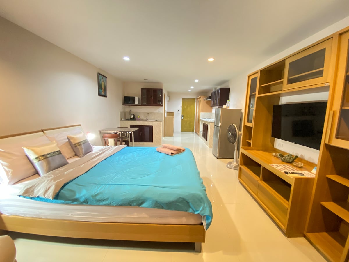 A cozy boutique accommodation conveniently located just across the road from Cicada and Tamarind Markets. The beach is only an eight-minute walk away (400 meters), surrounded by a vibrant neighborhood filled with shops, massage and spa venues, lively bars, and restaurants. Hua Hin’s downtown area is just a ten-minute drive (5 km) from our doorstep. This private studio unit with private bathroom, suitable for 1-2 guests, is a perfect place for a romantic holiday or a weekend friend getaway.