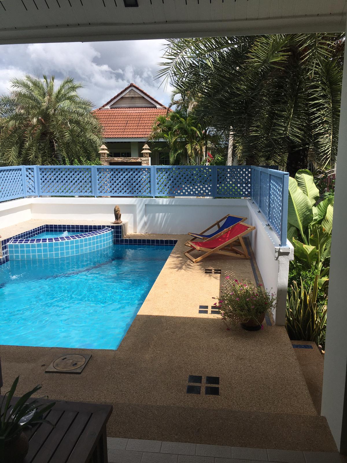 Fantastik villa with private pool and jacuzzi, in quiet and popular area. Vacker poolvilla och med 165 kvadratmeter boendeyta. Huset är beläget i ett litet och lugnt område som heter Baan Evelina hus nr.4 (mittemot Baan Suk Sabai 1 på Soi 102 ), ca 1,5 km från havet och 2 km från Market Village Shopping Center i Hua Hin.