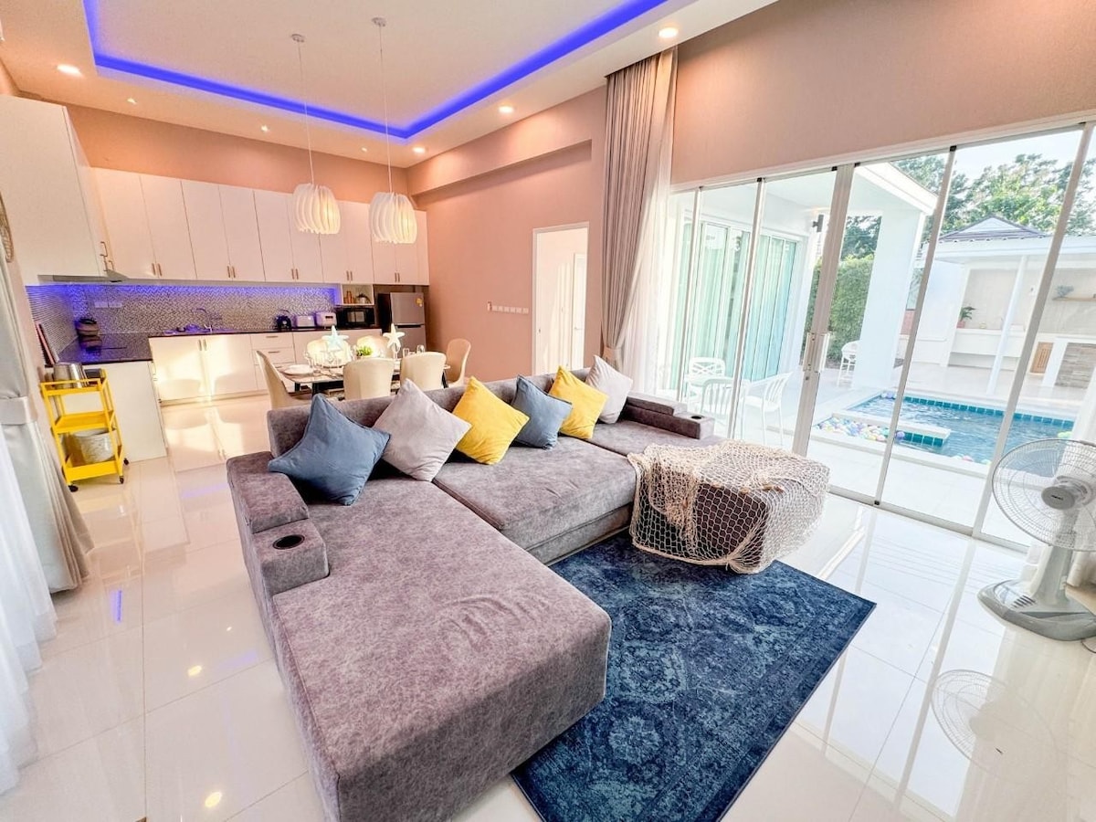 Escape to Hidden Pool Villa, a tranquil private retreat just 2 km from Hua Hin’s beach and Bluport Shopping Mall. Tucked away in a peaceful, secure neighborhood with stunning mountain views and a seasonal lake just steps away, this hidden gem blends comfort, nature, and convenience perfectly. Whether you're planning a family vacation or a relaxing group getaway, you’ll find everything you need for a carefree and memorable stay. Saltwater pool with seating Lush tropical garden 500mbit internet
