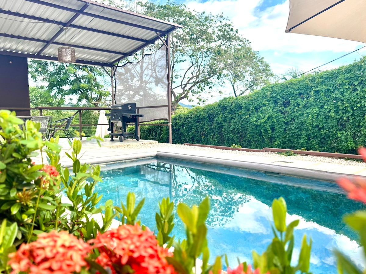Studio cosy indépendant accès piscine avec climatisation dans la chambres, wifi, à proximité de toutes commodité ( supermarché pharmacie restaurant) Point stratégique pour découvrirez les plus belles plages du Guanacaste Accès facile: route goudronnée avec parking privé gratuit fermé par un portail électrique Dans un écrin de verdure vous pourrez passer du temps au bord de la piscine et barbecue oú les animaux de compagnie ne sont pas admis mais ont une Coline à l’entrée pour les promenades