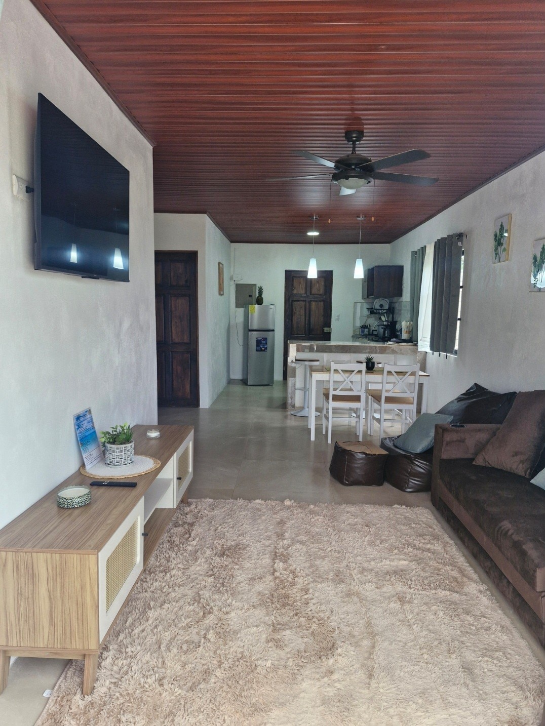 This location is just a 15-minute drive from Playa Grande Beach and "Las Baulas Marine National Park", offering a quiet, uncrowded surf beach and 15 minute drive from Tamarindo Beach. Enjoy the peaceful surroundings and nearby restaurants and grocery stores within a 3-minute drive. This single-story property is ideal for families and older adults, featuring a delightful pool. Smart TVs in all the rooms!
