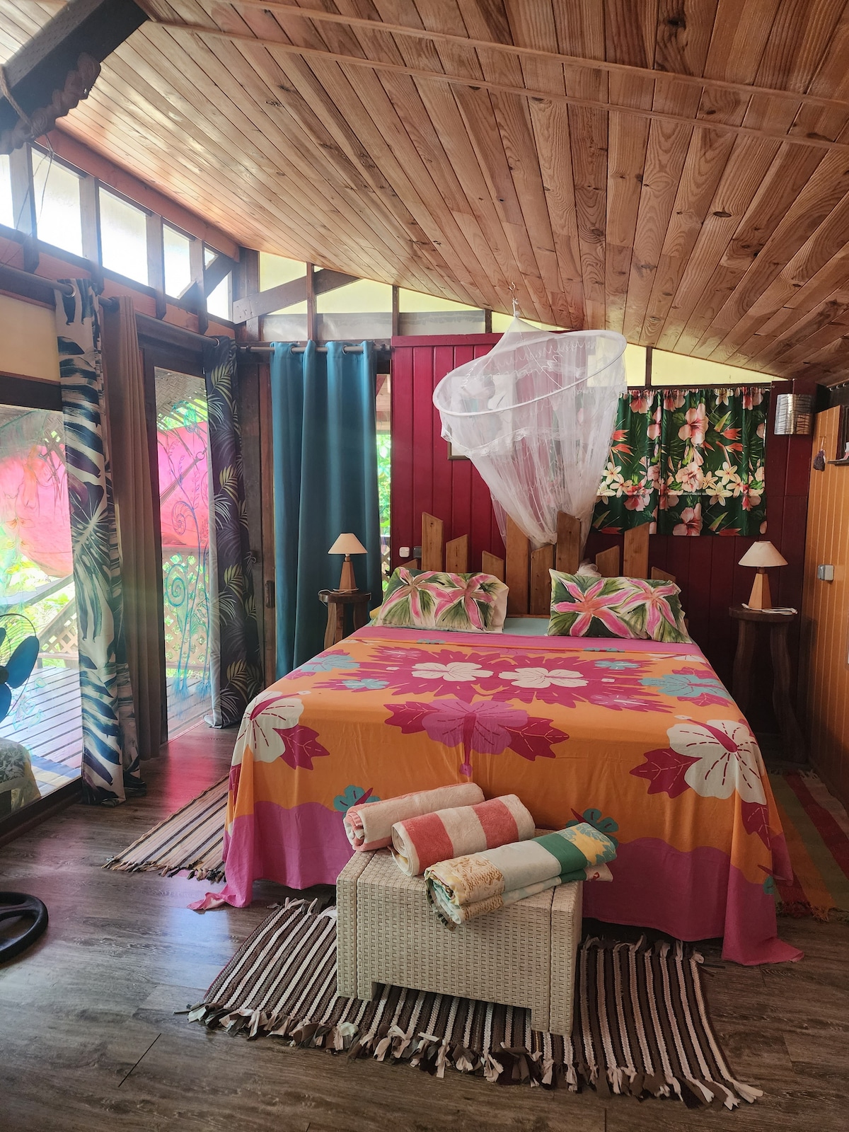 Bungalow VUE LAGON – TEAREA LODGE 2 pers max. Équipements : ✔ Kitchenette équipée (réfrigérateur, plaque de cuisson, équipements de cuisine) ✔ Salle de bain privative avec douche de pluie ✔ Climatisation, Wi-Fi gratuit ✔ Set café/thé Repas : - Petit-déjeuner inclus - Voiture de location et transferts depuis l’aéroport de Huahine en option. Ponton privé de la pension pour la baignade, le snorkeling ou un tour en kayak. Une voiture de location est fortement recommandée.