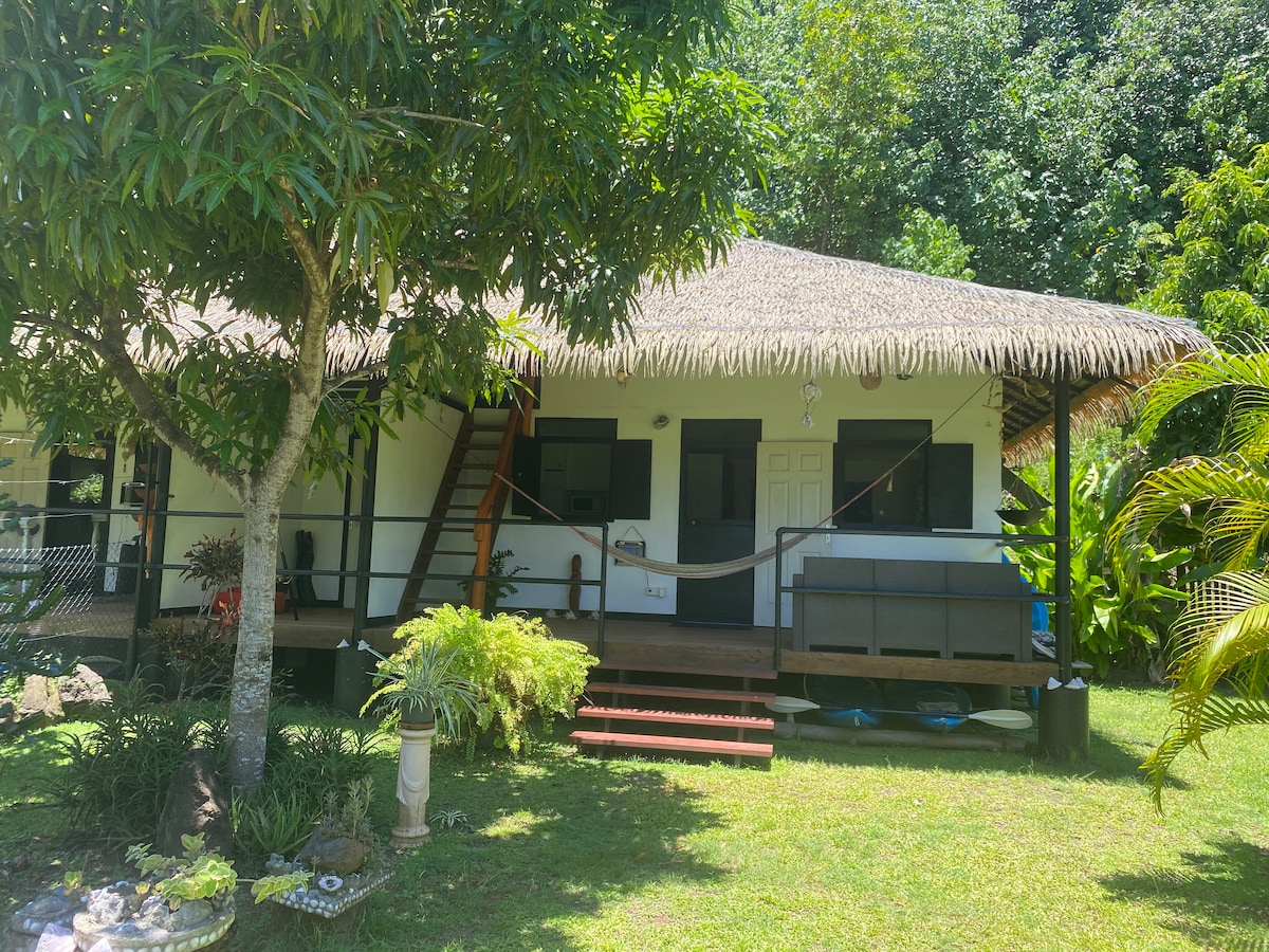 If you're looking for spacious accommodations in a peaceful tropical setting, this lovely home is right on the ocean on a 2-acre property surrounded by fruit trees & lush mountains. You’ll enjoy your own private beach area with clear turquoise waters & beautiful snorkeling right in front. Explore the lagoon with the kayaks, watch the sunset from the garden, enjoy the hot outside shower, sunbathe by day or stargaze by night, make a bbq in the firepit. It's truly a paradise! Car included.