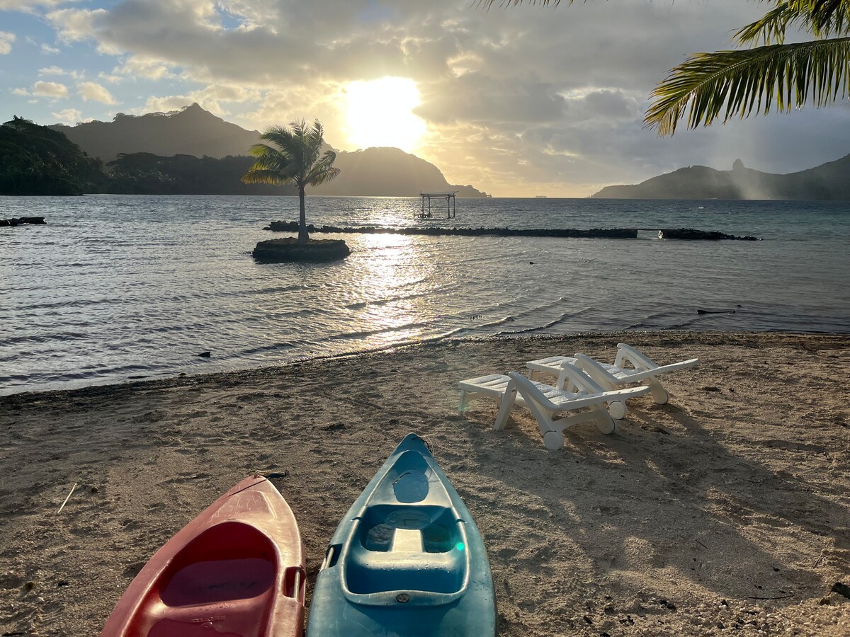 Un emplacement unique : Imaginez vous être à 30 mètres de la plus belle plage de l’île à 5 minutes à pieds du centre ville de Fare (restaurant, commerces, banques, pharmacie etc… ) Nous mettons gratuitement à votre disposition matériel de snorkeling et kayak. Location de voiture, de scooter, ainsi qu’un service de navette sont disponibles à la demande afin de vous faire bénéficiez de la meilleure experience sur notre île magique !