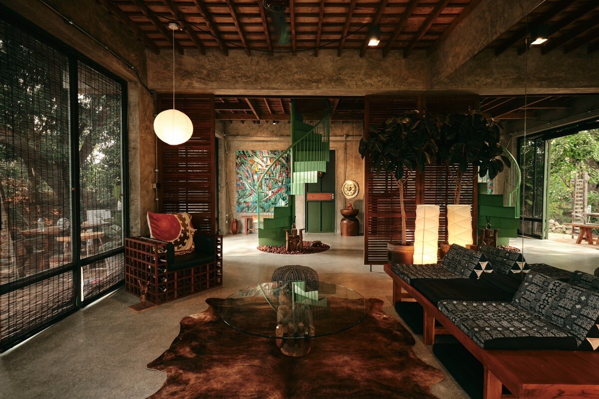 Make your trip to Chiang Mai memorable by staying in a private treetop resort! Helipad is a unique property— a cluster of large bamboo bungalows raised high off the ground with a vintage Huey helicopter in the main room. Located in the heart of trendy Suthep district at the foot of Doi Suthep, Helipad is an easy walk from popular venues like Lan Din and Baan Kang Wat. Helipad has 2 large bedrooms, a small pool, and many amenities. It's a place you'll never forget!