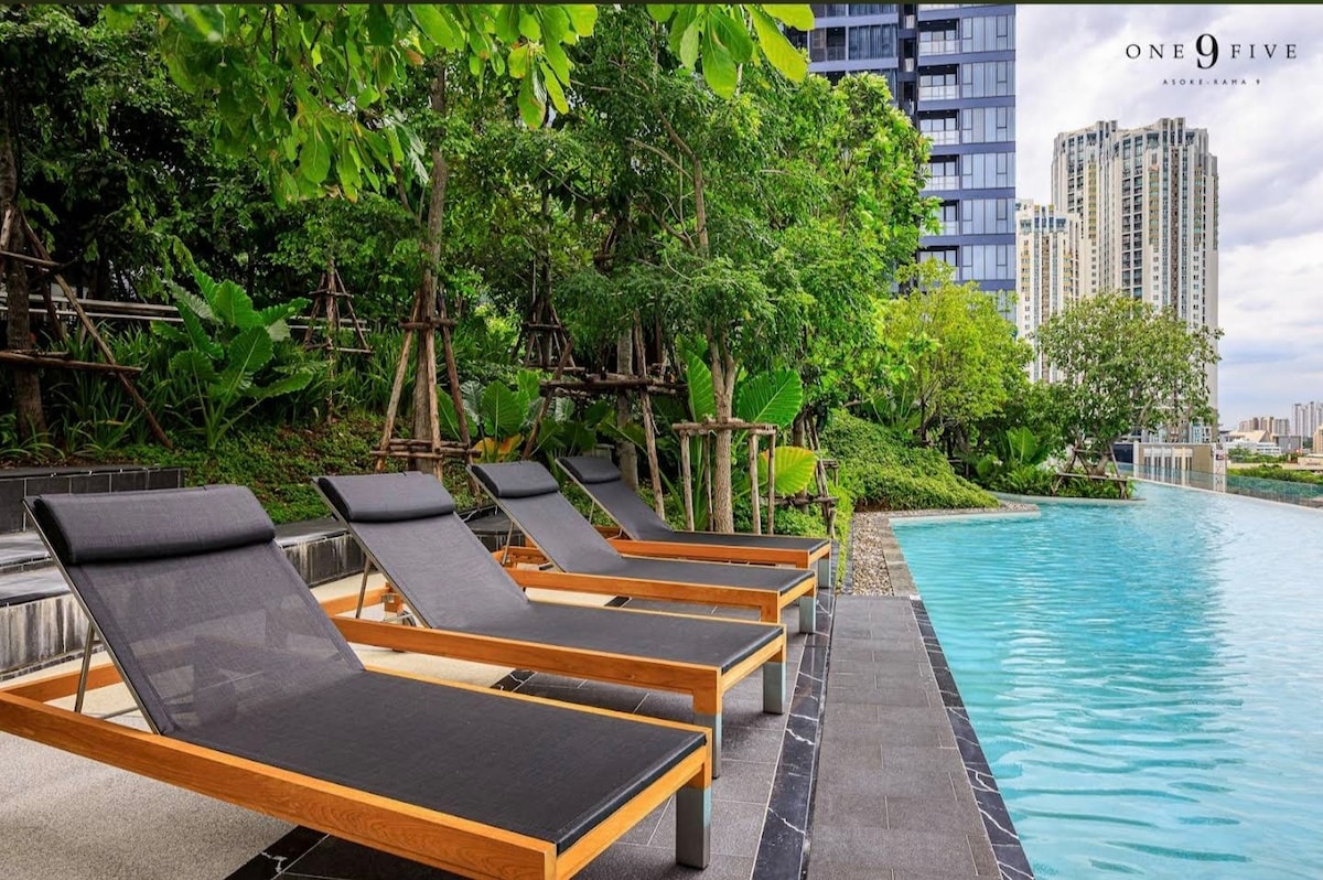 One9Five Asoke - Rama 9豪华37平一室豪华公寓,泳池健身房订房超7天送接送机