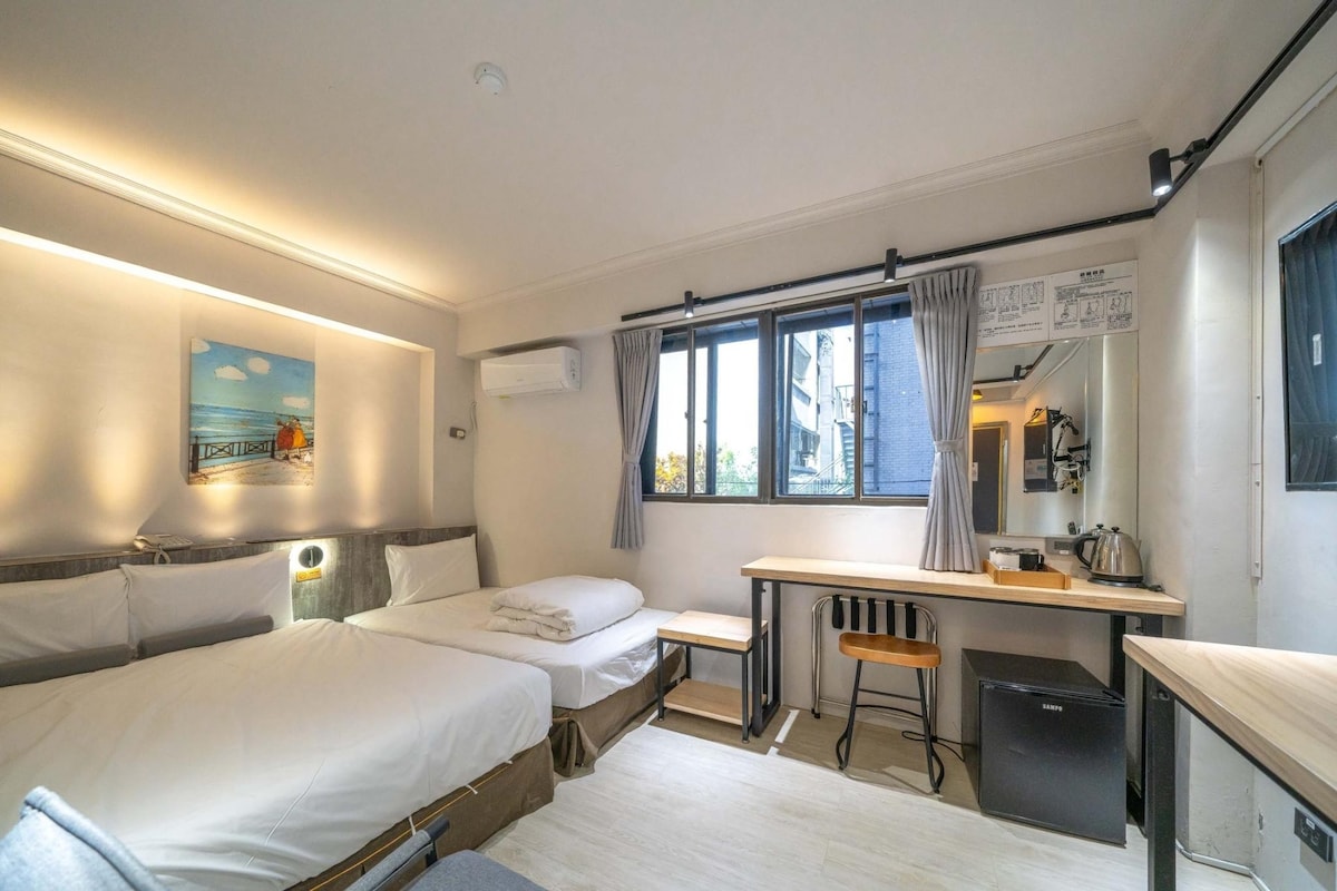 入住这间时尚简约的三人房,轻松畅游花莲热门景点! 房间采光良好,配有独立Wi-Fi、42吋联网电视和大书桌。民宿附近有自助洗衣店、7-11、全家便利商店,步行即可抵达东大门夜市;屋顶还能眺望太平洋。 房内为独立卫浴,B1设有微波炉,并提供免费脚踏车。 Wi-Fi密码:168168168(每房独立Wi-Fi) 民宿提供免费大型停车场。