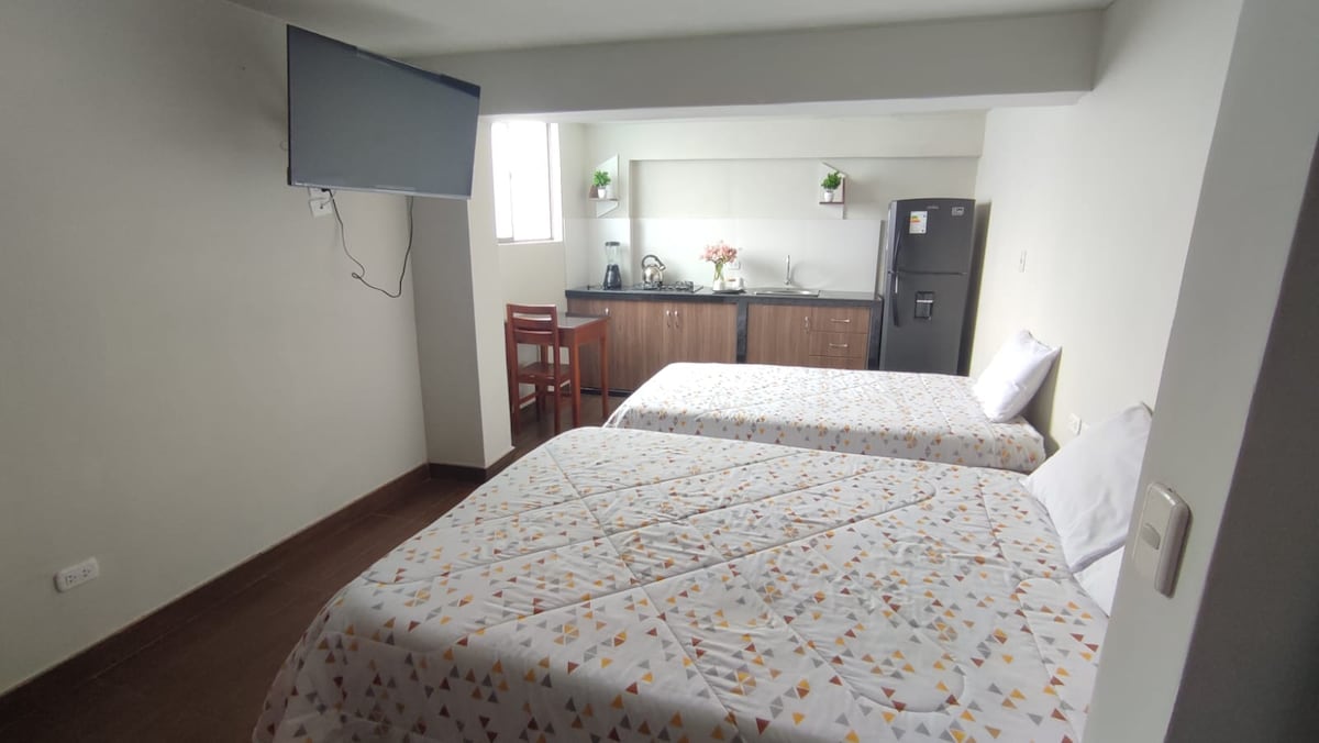 房间配有两张床和厨房,位于Huancayo