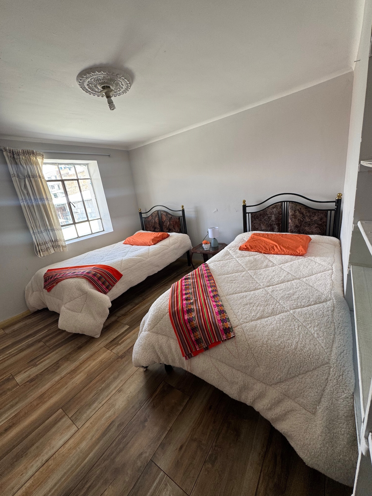 Private apartment in a house with two entrances, with chimney, three comfy rooms, ample living room, all furnished and with all services to have a pleasant stay in the Mantaro Valley. Public transportation (colectivos), can be taken at the door for easy access to downtown Huancayo in 10 minutes, yet the neighbourhood is quiet and safe with grocery stores around the block. Vivienda primer piso con dos entradas, chimenea, tres habitaciones, sala de estar, todo amoblado y con todos los servicios.