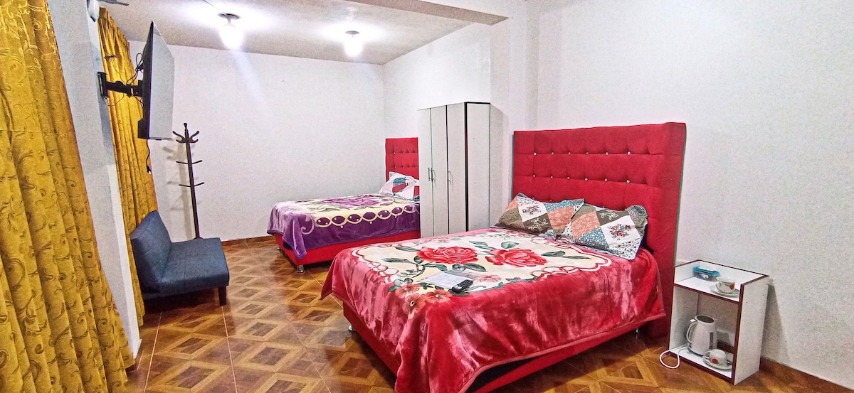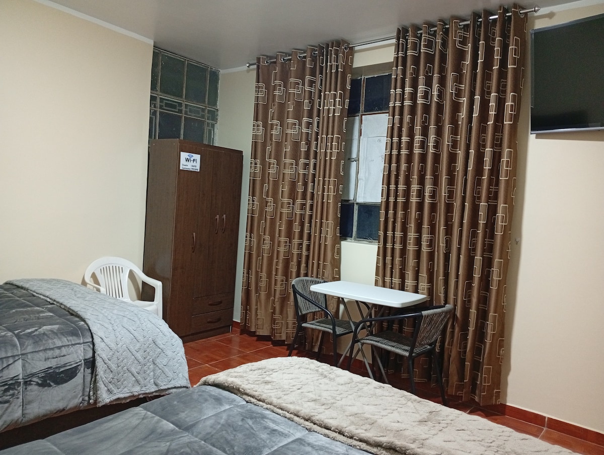Desconecta de tus preocupaciones en este espacio amplio, sereno y acogedor, pensado para que descanses y te sientas como en casa. Ideal para parejas o viajeros que buscan tranquilidad, comodidad y privacidad en Jauja, cerca a la plaza de yauyos. A 10 minutos del aeropuerto de Jauja Cuenta con todo lo necesario para una estadía placentera, ya sea por descanso o trabajo. Un lugar perfecto para relajarte y disfrutar de la calma de la ciudad.