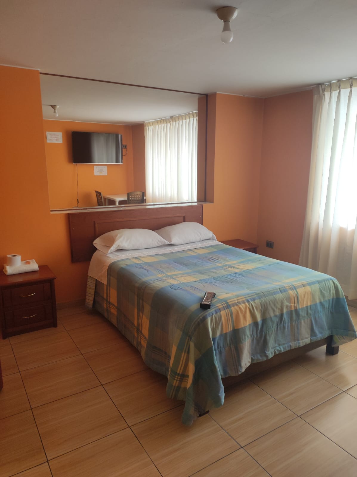 Nuestro alojamiento te ofrece una habitación completa con TV Smart y cable. Priorizanos la limpieza de nuestras habitaciones como espacios en común. Brindamos el servicio de desayuno en nuestro cafetín. Contamos con Wifi en todos nuestros espacios. Recepción las 24 horas y servicios de limpieza y camarería diario. El diseño de nuestra habitaciones permite que tengas el mobiliario y comodidad necesaria para una estadía placentera.