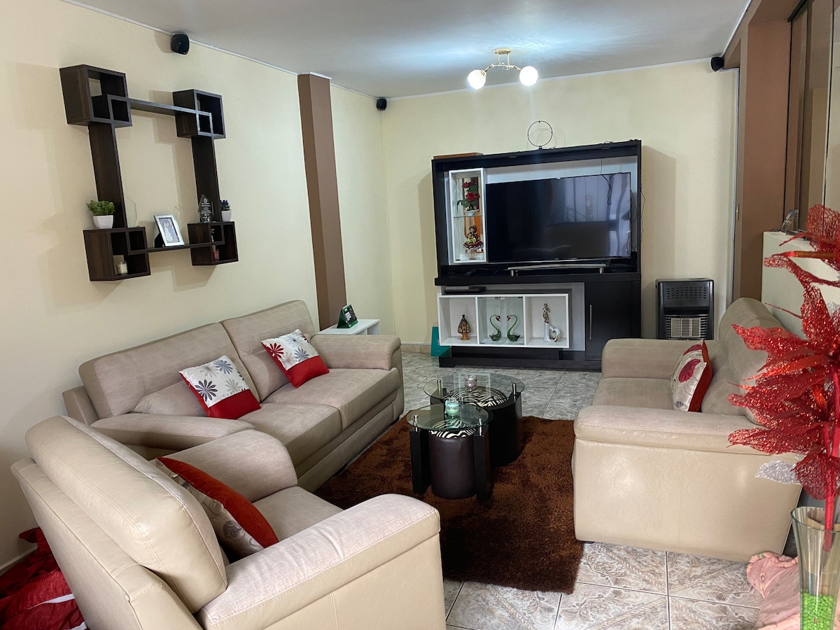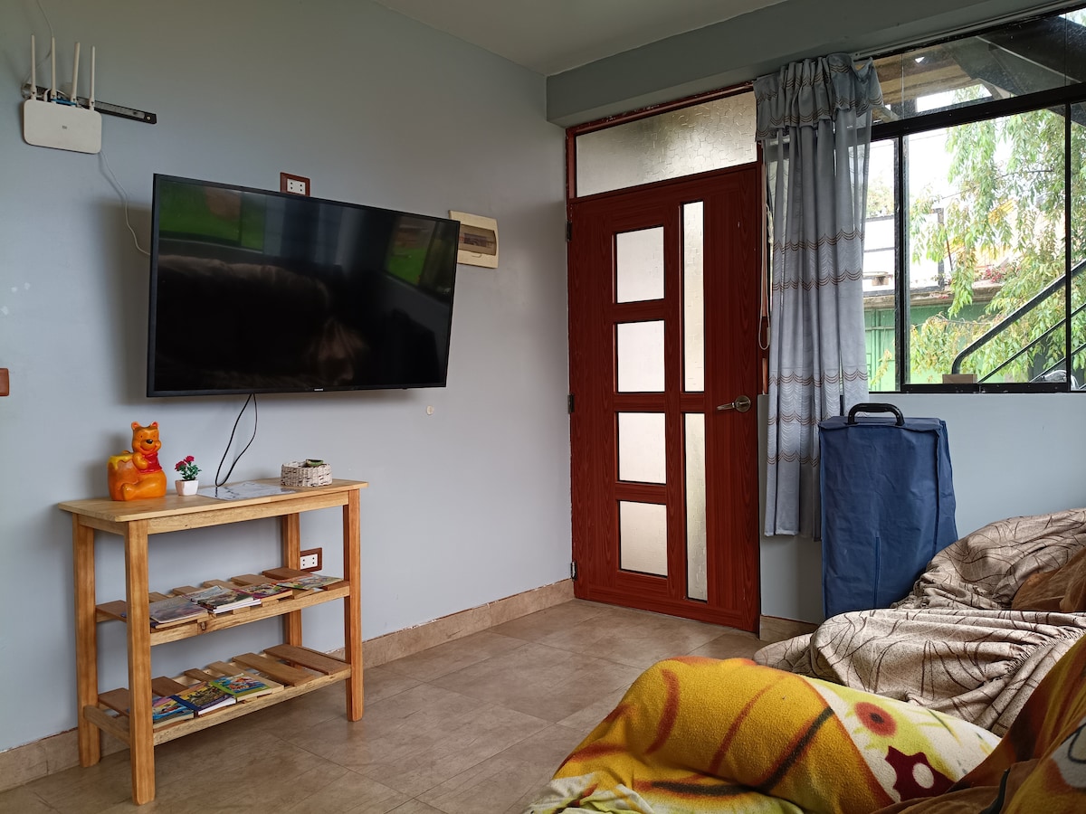 We are Nin Wasi! Experience the comfort and charm of this cozy apartment in the heart of Huancayo, just one block from Plaza Constitución, the Cathedral, and Calle Real. Enjoy nearby restaurants, tour agencies, banks in the central area, and the shopping centers Open Plaza and Real Plaza (3 and 4 blocks away). With fast Wi-Fi and a fully equipped kitchen, it’s the perfect space for families, groups, or remote work. Book today and live the Nin Wasi experience we look forward to welcoming you!