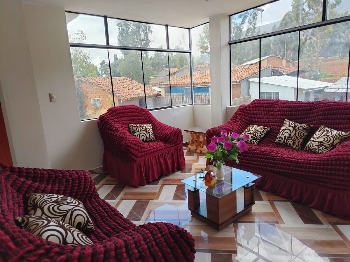 Descubre el hermoso valle del Mantaro y hospédate en un lugar tranquilo y seguro a 10 minutos del centro de Huancayo. Un departamento cálido y equipado para pasar tiempo en familia (4 personas) pero si desean ser un grupo más grande podremos añadir hasta 3 espacios más, ya que contamos con una habitación adicional dentro del mismo departamento. Incluye cochera