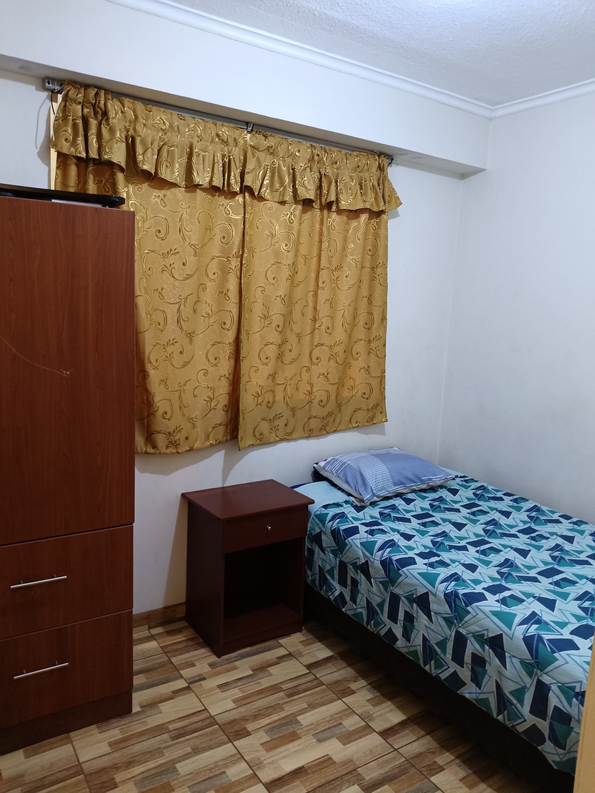 Acogedor departamento en 2do piso con 2 habitaciones, cocina equipada, sala comedor y 1 baño completo. Zona céntrica de las zonas turísticas de Trujillo. Tiene vista a áreas verdes a espaldas de la casa, cuenta con excelente iluminación natural. Cuenta con Wifi, Netflix, youtube, agua caliente, desinfección de zapatos y manos, toallas de limpieza y todos los utensilios necesarios en la cocina. La casa cuenta con un sistema de cámaras de seguridad (Prosegur) para mayor seguridad. Te esperamos!